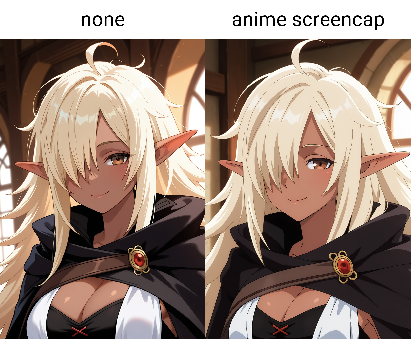 프롬프트에 "anime screencap"를 사용하면 애니메이션 분위기에 더 가까워집니다.