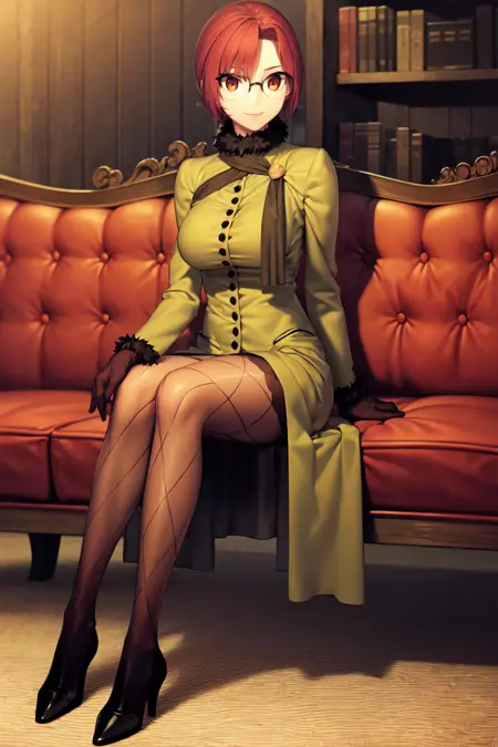 围巾、绿色连衣裙、手套、丝袜、渔网袜、高跟鞋