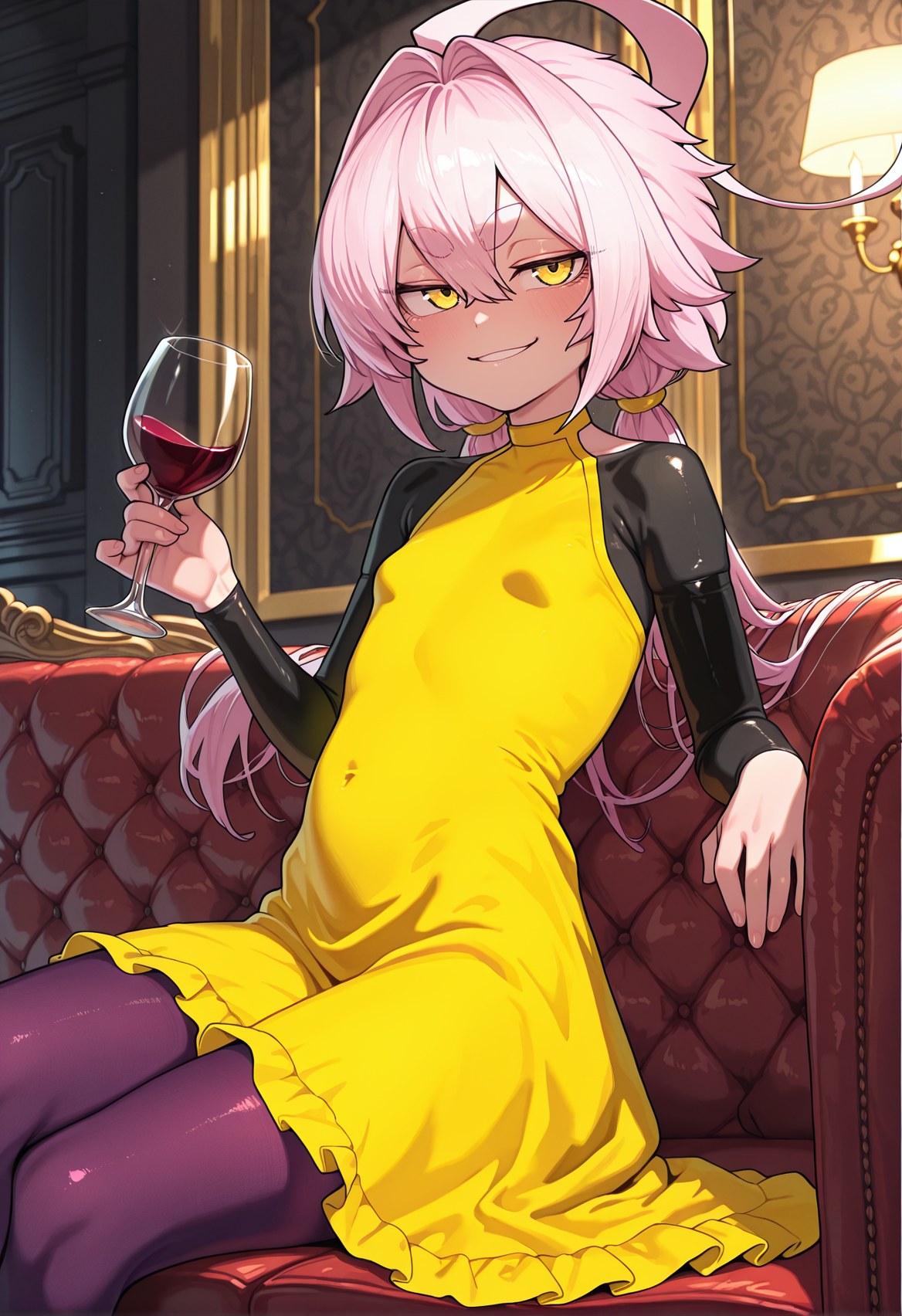 主提示词:yayoismol,粉发,长发,浓眉,发束,发帘,cowlip_ahoge,黄眼,小胸