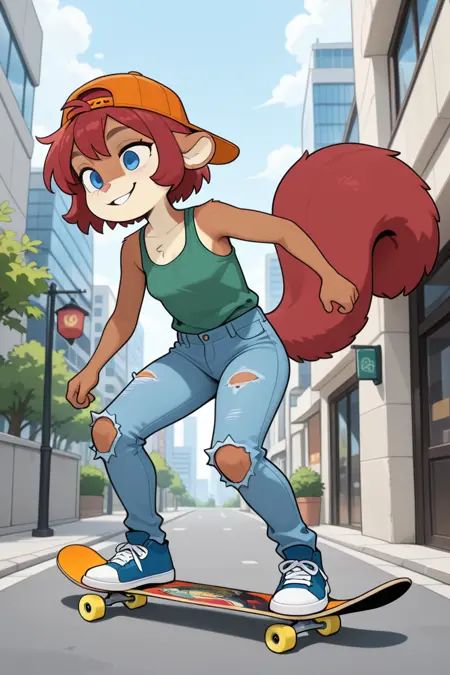 Tags: liz4, anthro, furry female, squirrel girl, squirrel tail, squirrel ears, red hair, short hair, blue eyes,