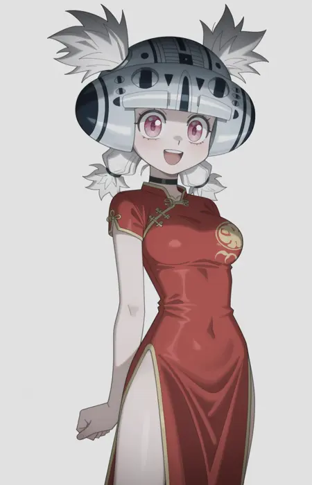 elenahxhv1, white hair, short twintails, helmet, personification, pink eyes, twintails,