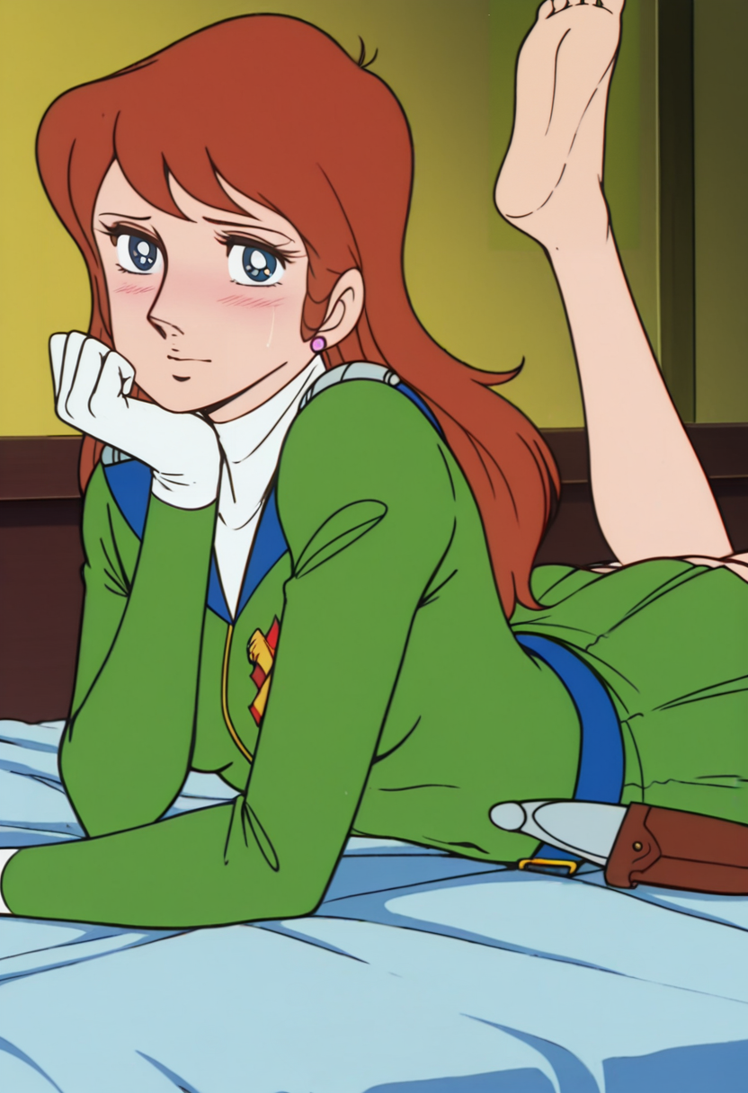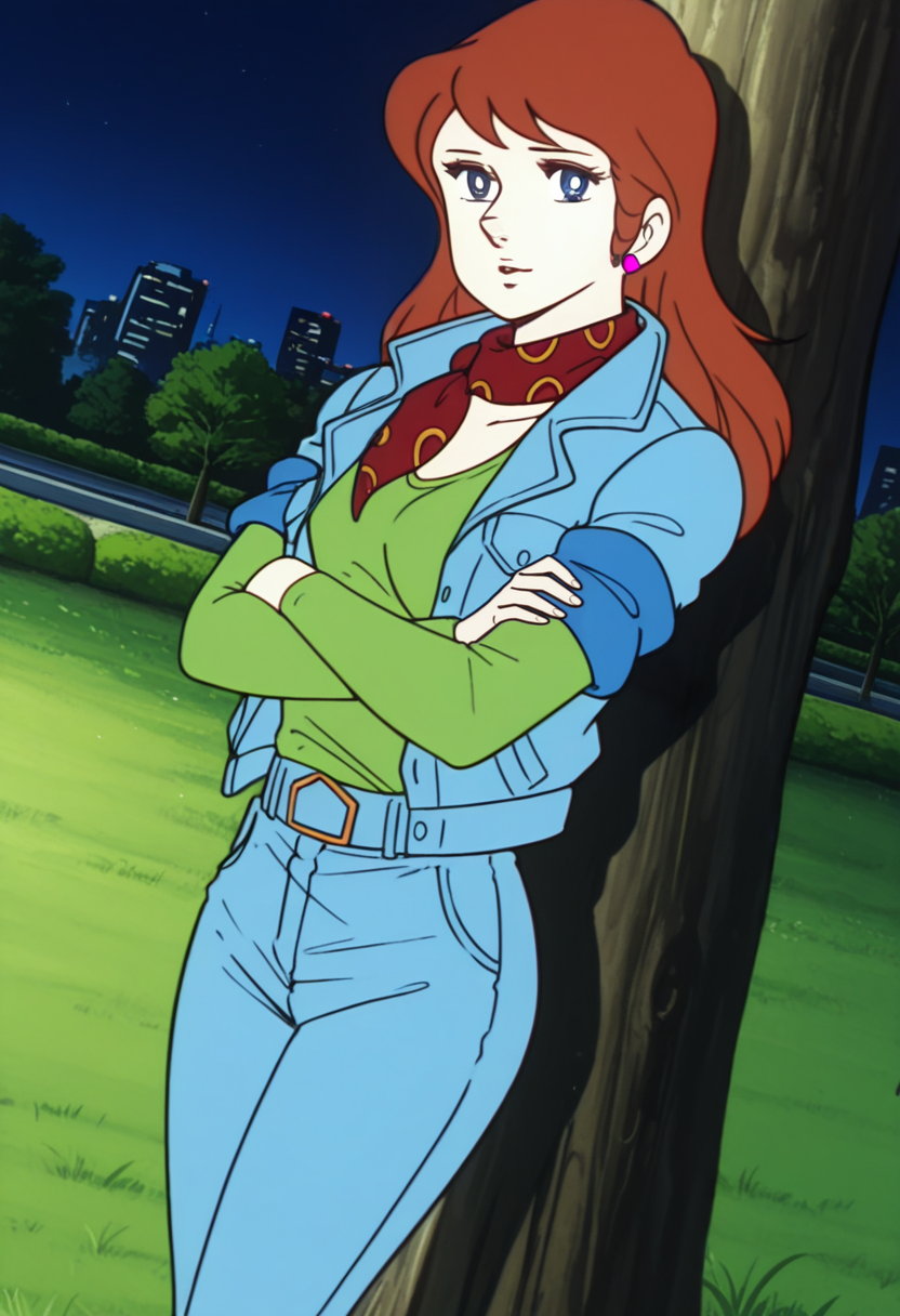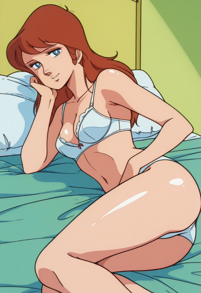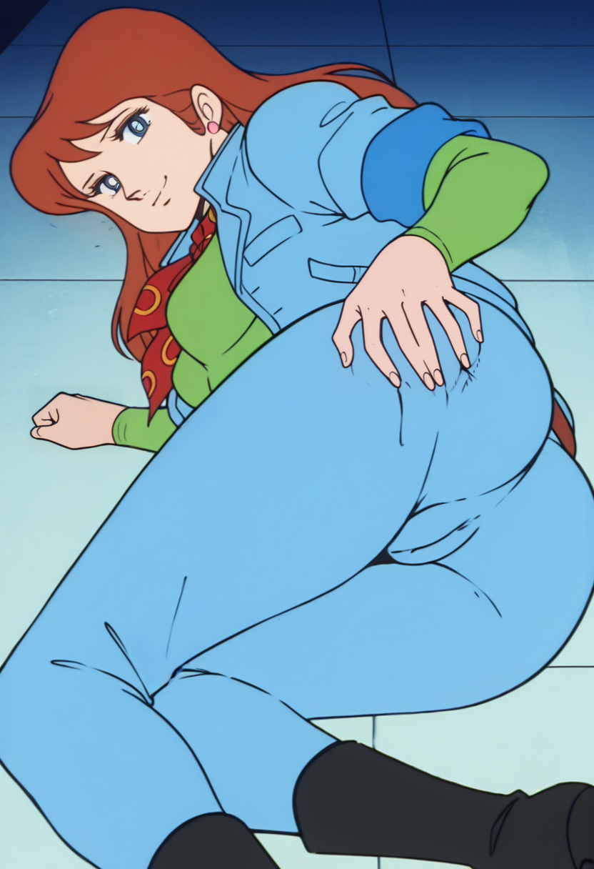 TachibanaAi, 레트로 아트 스타일, 1970년대 \(스타일\), 1소녀, 싱글, 긴 머리, 갈색 머리, 파란 눈, 중간 크기 가슴, 넓은 엉덩이,