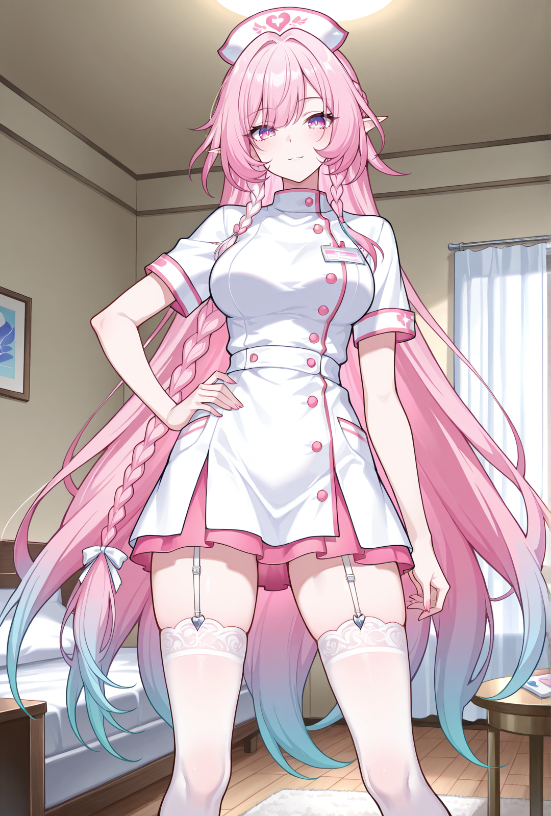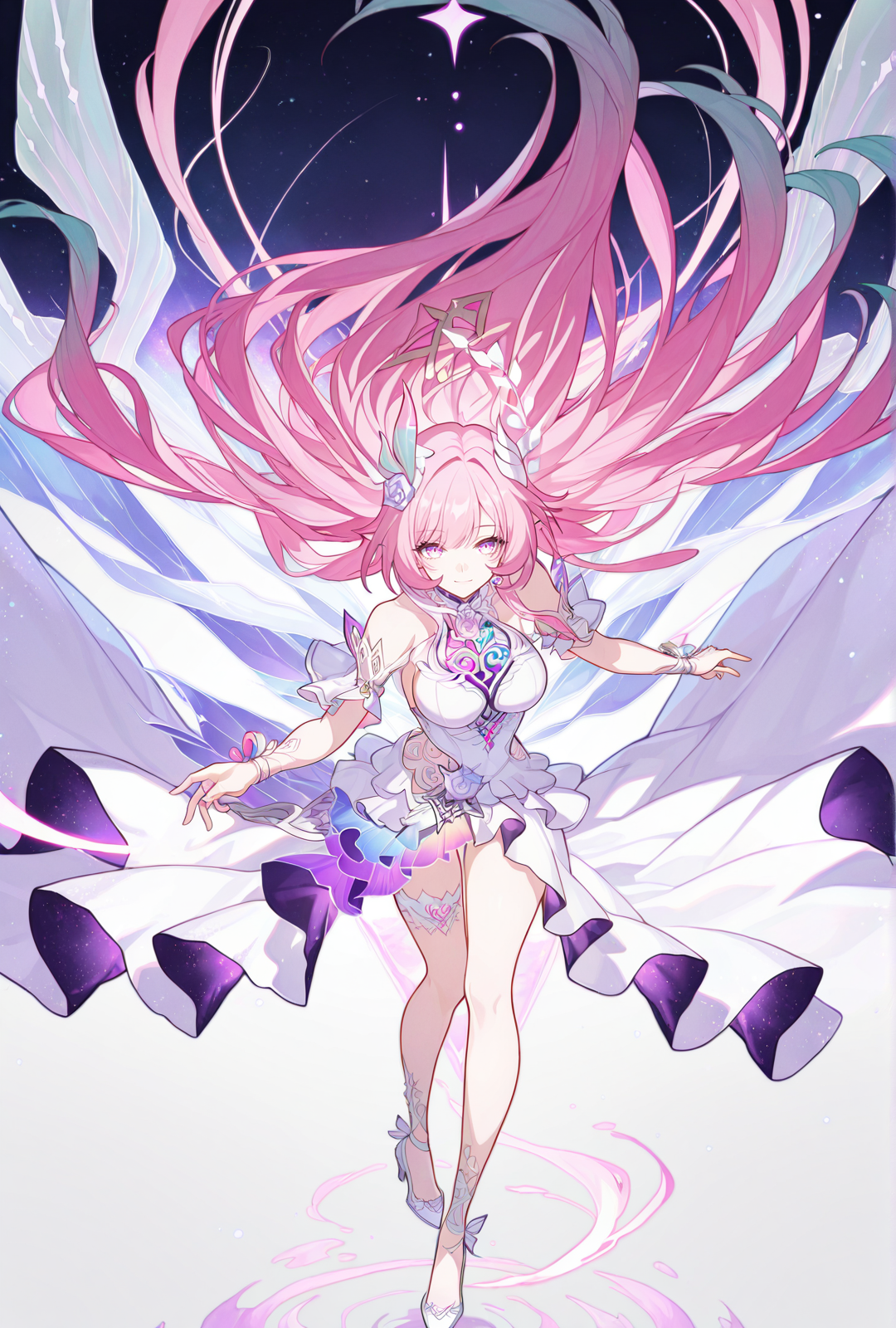 | 학습된 단어 | cyrene (hsr), 1girl, solo, pink hair, very long hair, pointy ears, hair ornament, medium breasts, pink eyes, white dress, white footwear, high heels복사됨! CyreneC, 1girl, long hair, braid, gradient hair, pink hair, solo, fingerless gloves, crop top, bare shoulders, navel, white footwear, white skirt, midriff, hat, socks, miniskirt, sleeveless, sneakers, white gloves복사됨! |