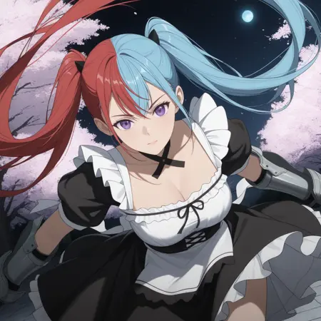 Character: (IceHeatMugenGacha, purple eyes, twintails, two-tone hair, red hair, blue hair)