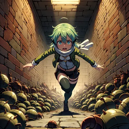 그러나 손이 벌레 떼에서 나와 있는 장면을 생성하려면 최소 0.7의 강도가 필요하며, 예를 들어 흰 장갑이나 반지가 있을 경우 제대로 생성되지 않을 수 있습니다. 나머지 장면들은 0.4의 강도로도 생성 가능하므로, 다른 LoRA 요소들과 호환된다면 1부터 6까지 모든 이미지를 생성할 수 있습니다.