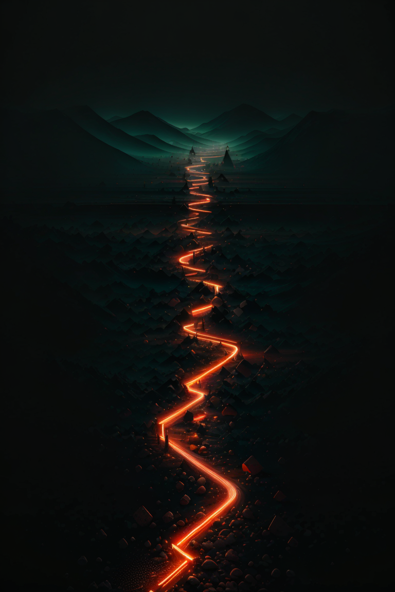 トリガー: slstyle、黒い背景、暗い、光、白いネオンの輝き、