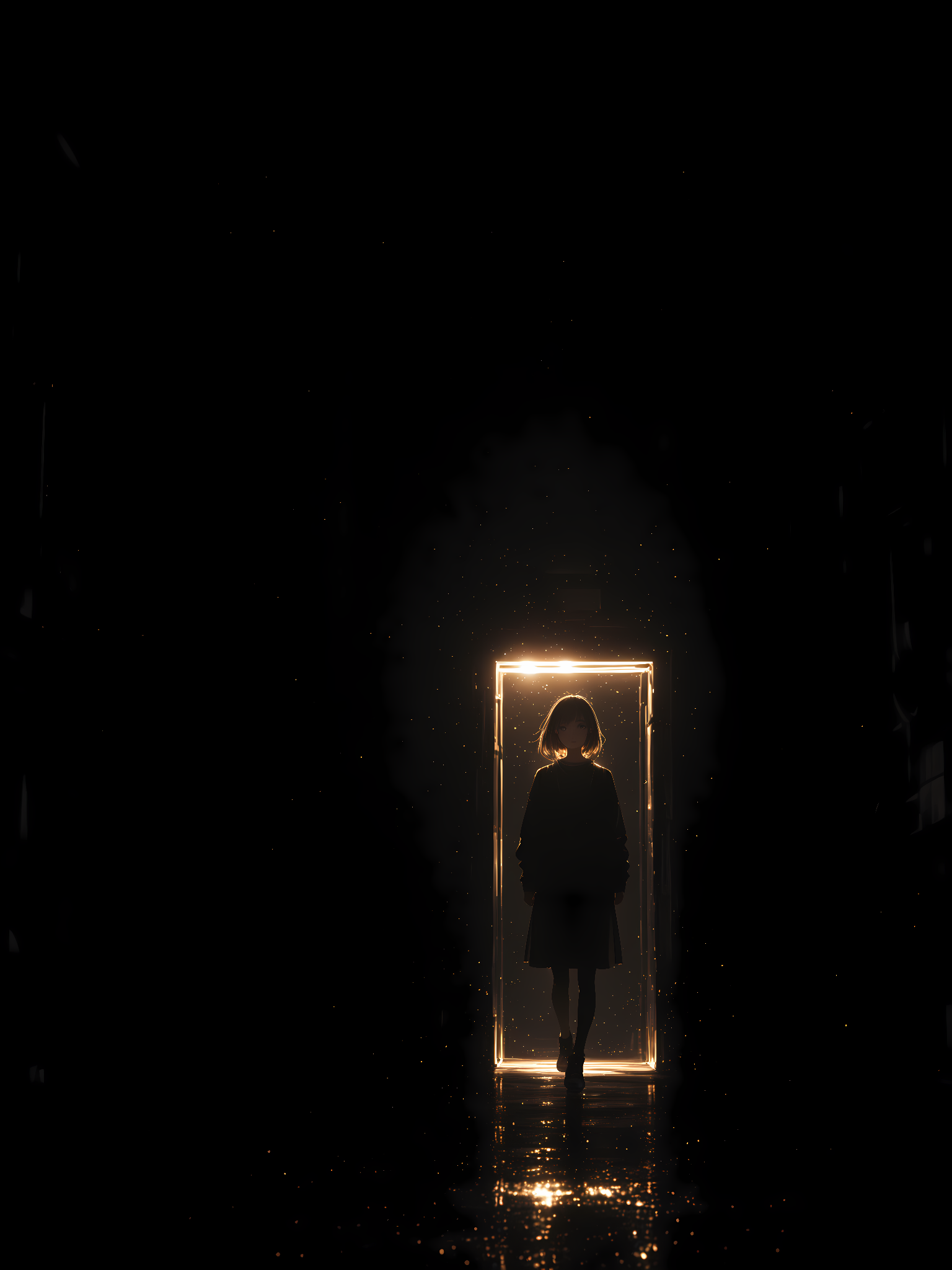 Trigger: slstyle, black background, dark, light, white neon glow,