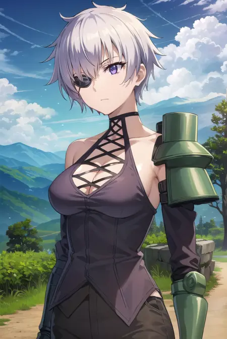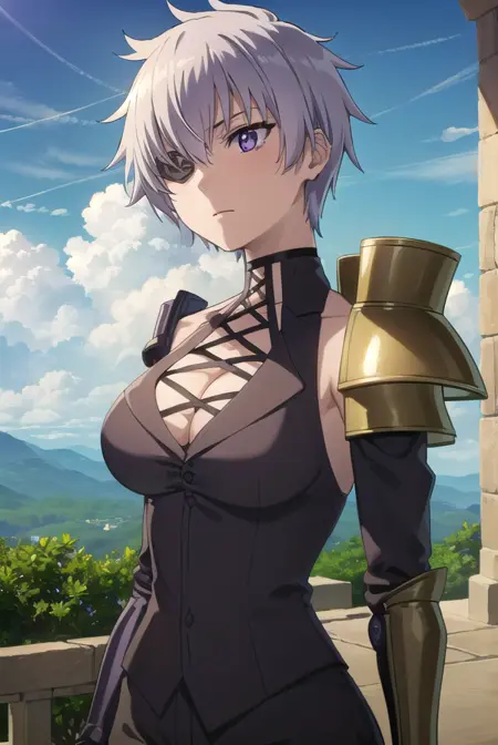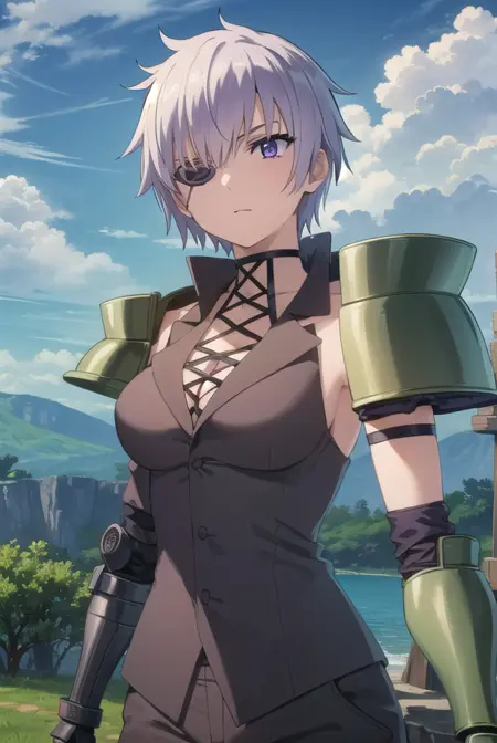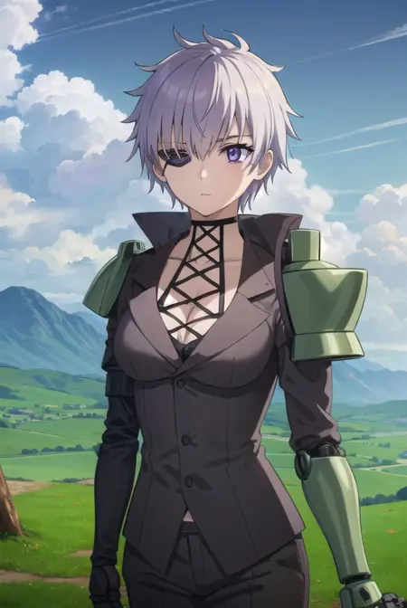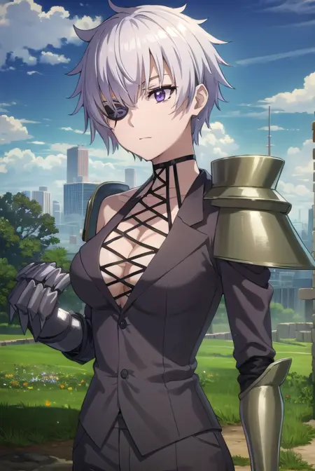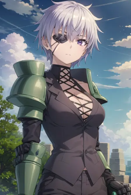 najenda,短发,(紫色眼睛:1.3),灰发,眼罩,