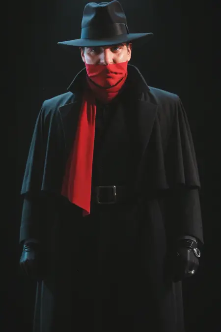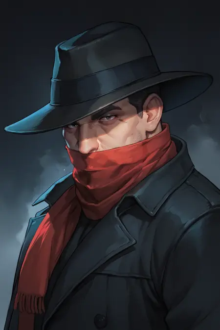 • 触发词:theshdw、围巾、面具、圆顶硬礼帽、短发、风衣、斗篷、手套、腰带、戒指、长裤、鞋子