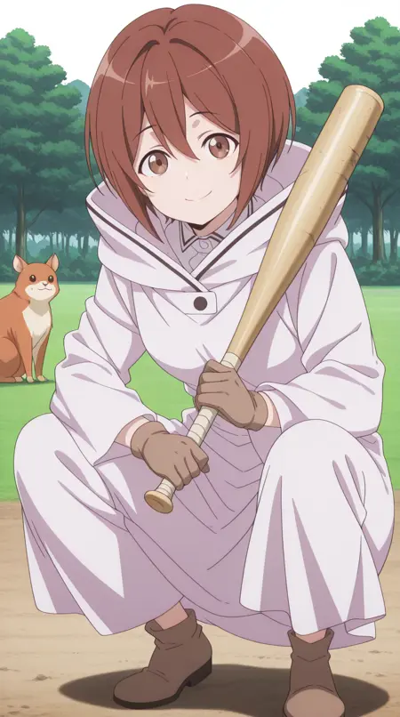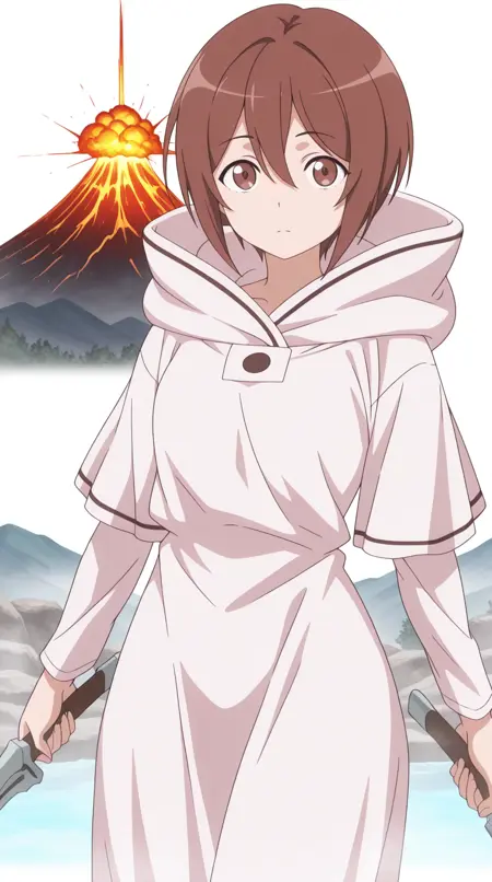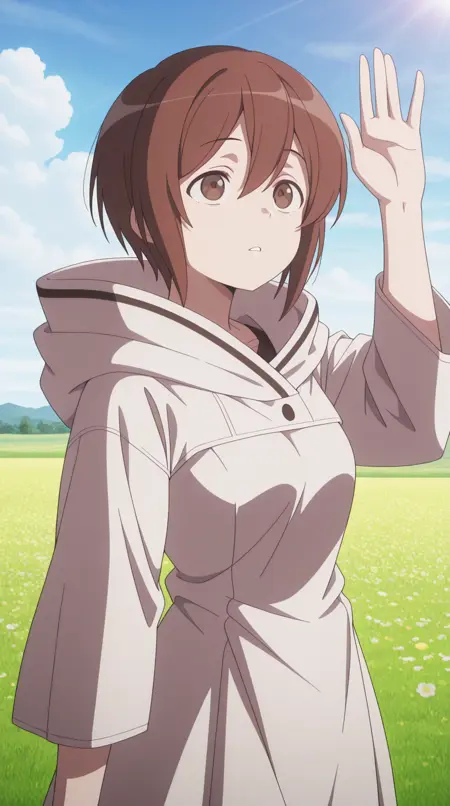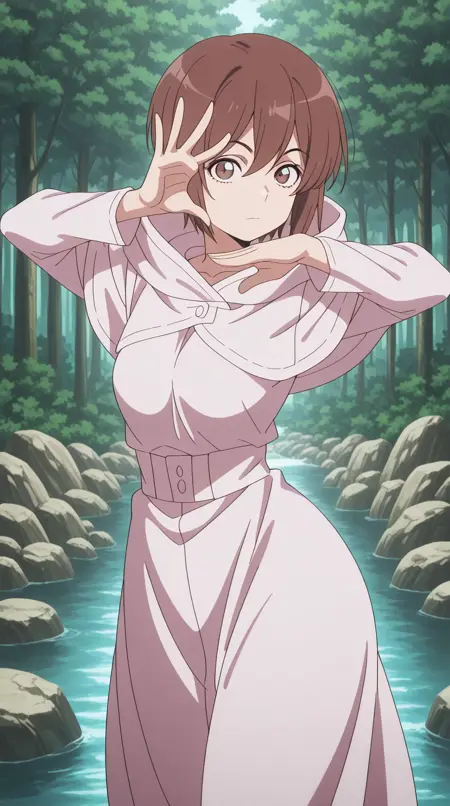 miya, short hair, brown hair, hair between eyes, brown eyes, mature female, small breasts, anime screencap