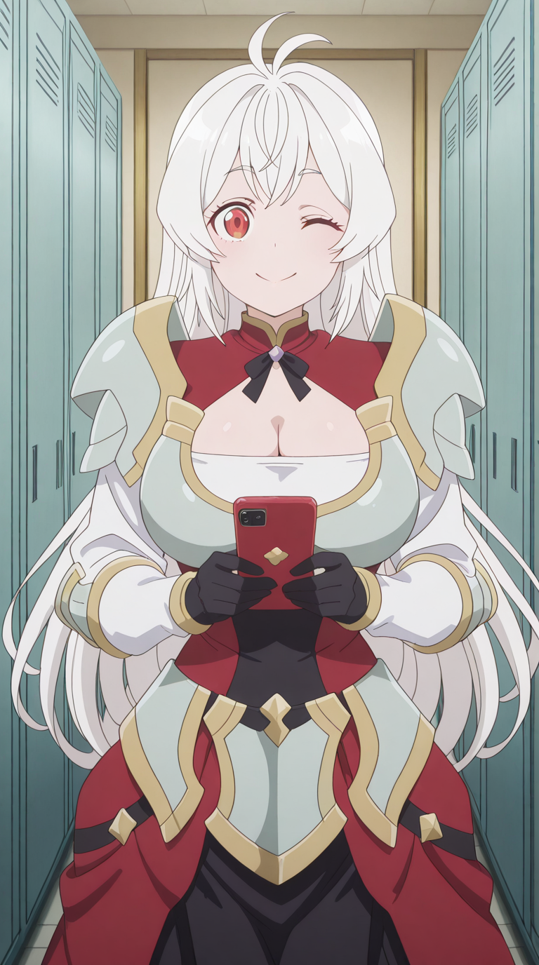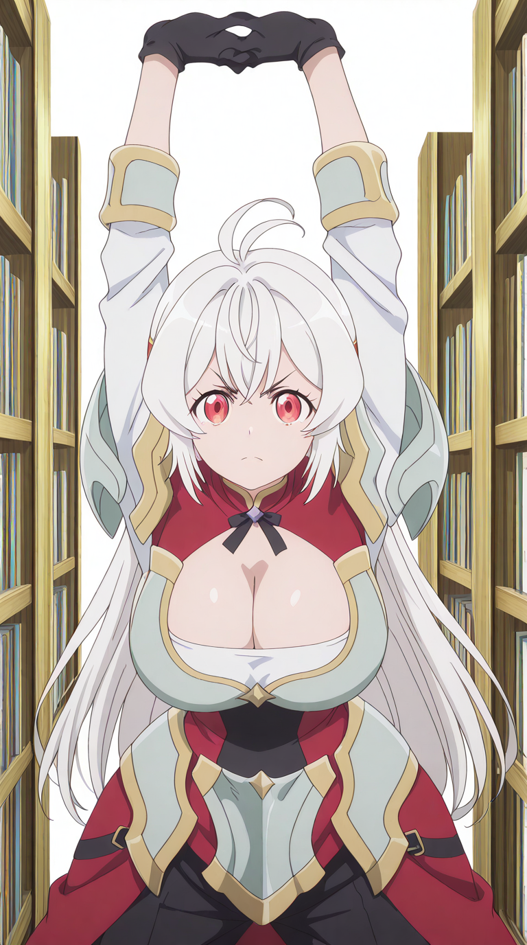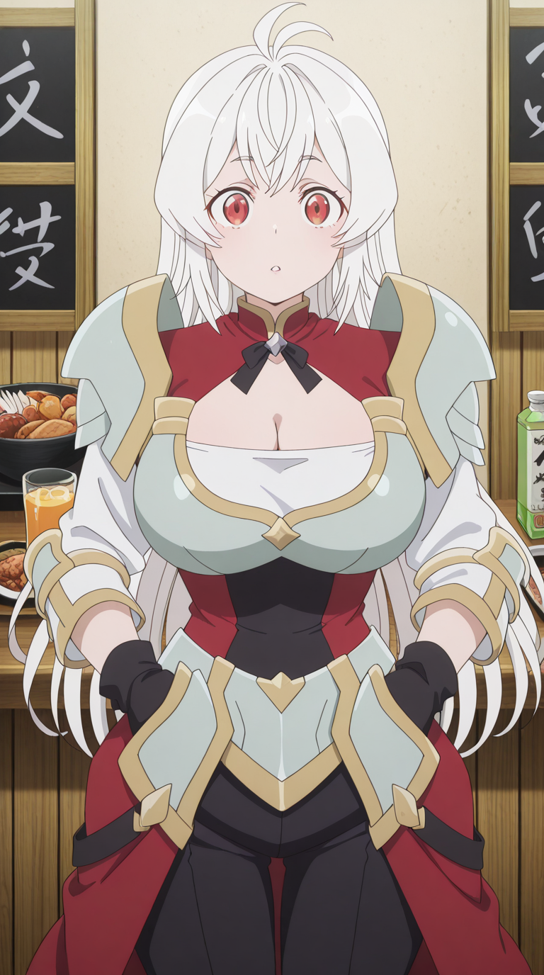 nazuna, 긴 머리, 빨간 눈, 흰 머리, ahoge, 안테나 머리, 성숙한 여성, 큰 가슴, 애니메이션 스크린캡