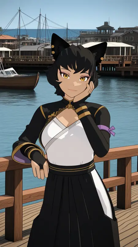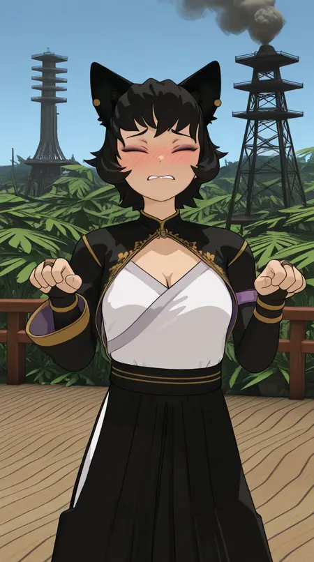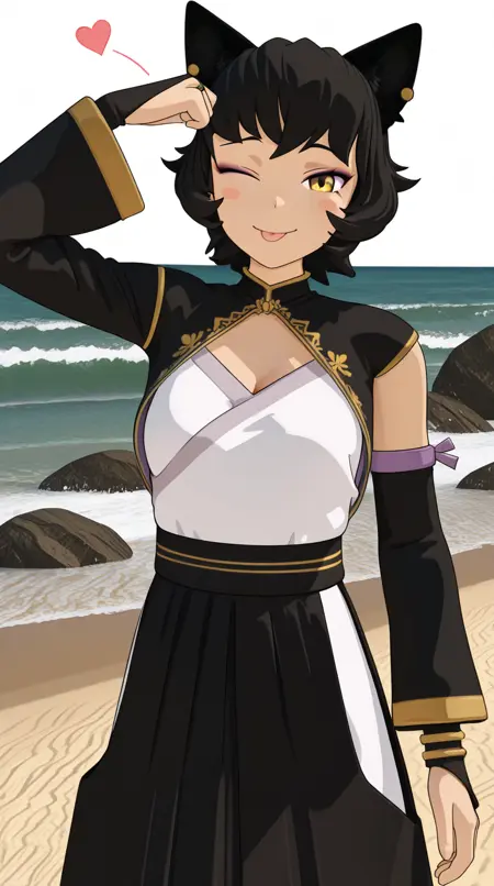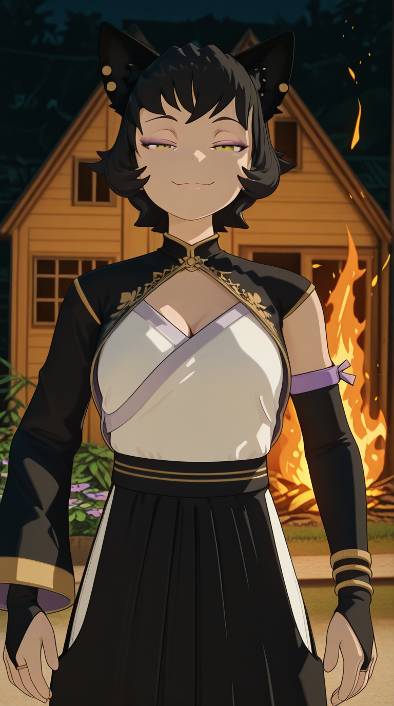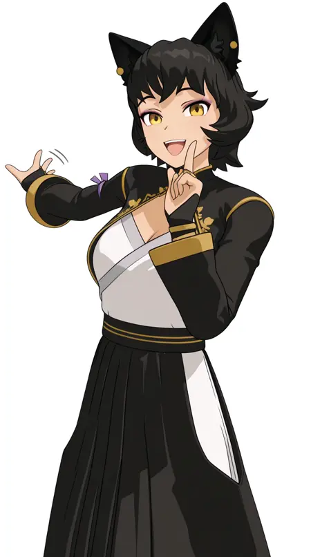 kali belladonna, short hair, black hair, animal ears, yellow eyes, cat ears, cat girl, mature female, medium breasts, 3d