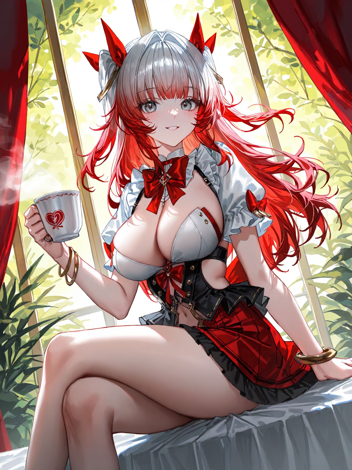 Prompt Words: PuPu, PuPu-Specular_Soul_(Heartspell Magic), white hair, red hair, multicolored hair, hair ornament, grey eyes,