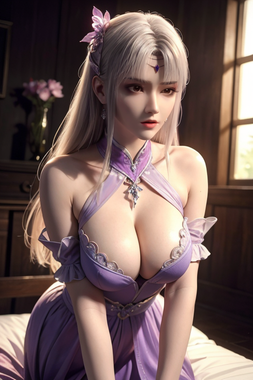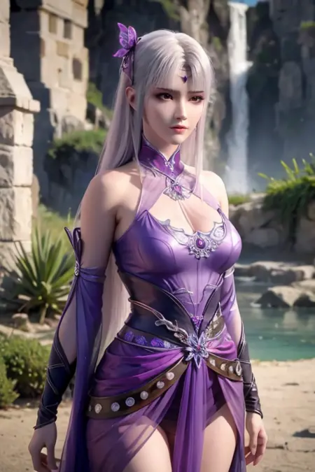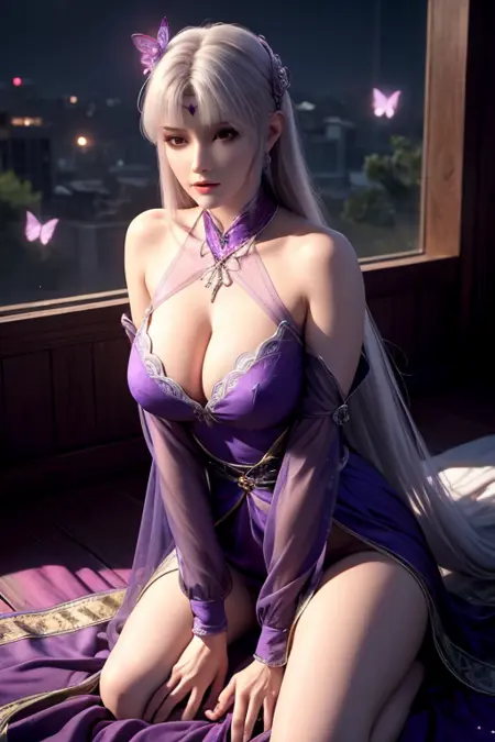 关键词:fairydoctor,紫色长裙,露肩,蝴蝶发饰