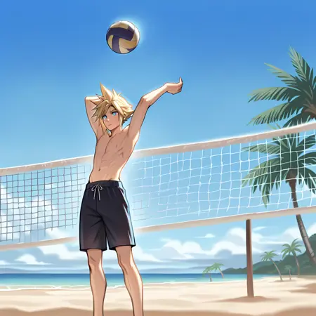 outdoors, volleyball net, day, blue sky, volleyball (object), beach