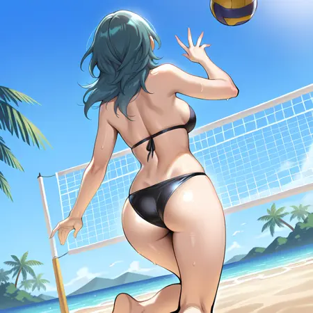 附加:户外、排球网、白天、蓝天、排球(物体)、沙滩