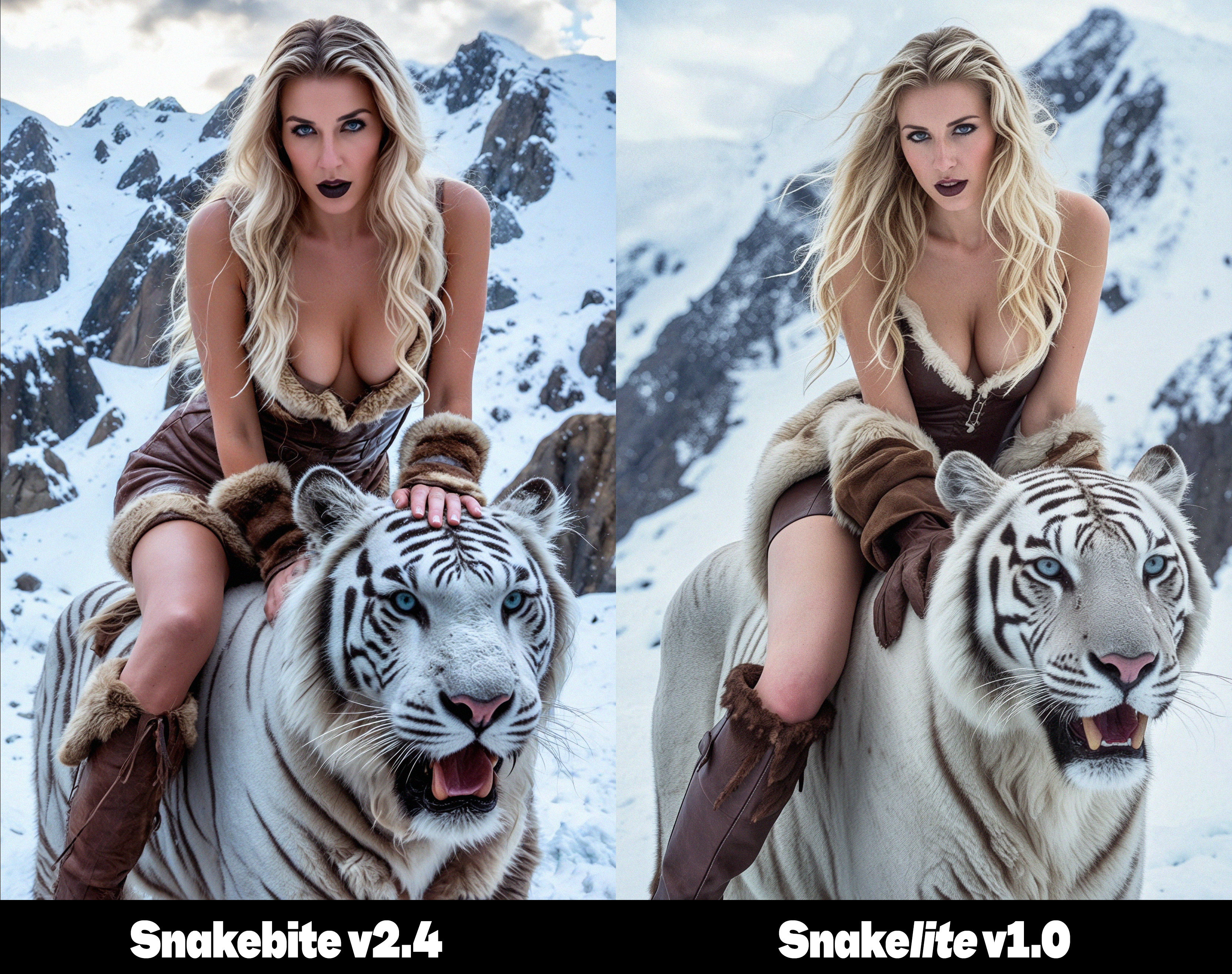 Snakelite は、Snakebite 2.3 と同様に、1400枚の画像で微調整され、審美的な品質が向上しています。