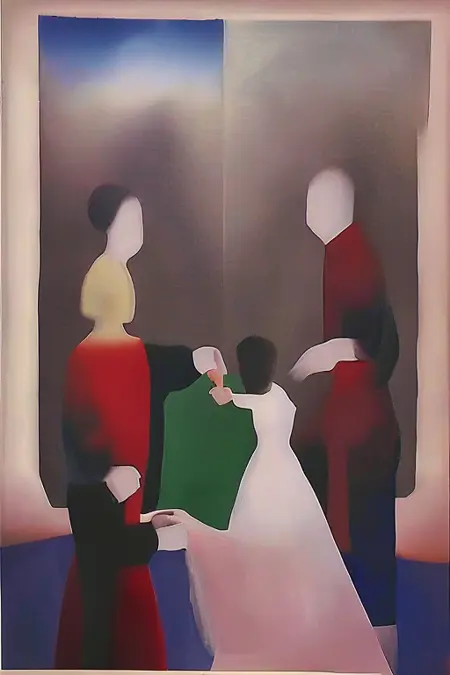 其结果是一种高度独特、略带诡异的数字美学:人物仿佛低多边形3D渲染或瓷偶,带有微妙的像素化低保真纹理,营造出一种诡异而优雅的氛围。它融合了前卫实验、故障艺术影响、冷酷的赛博朋克基调与复古数字怪诞风格——奇异、上瘾且一眼可辨。