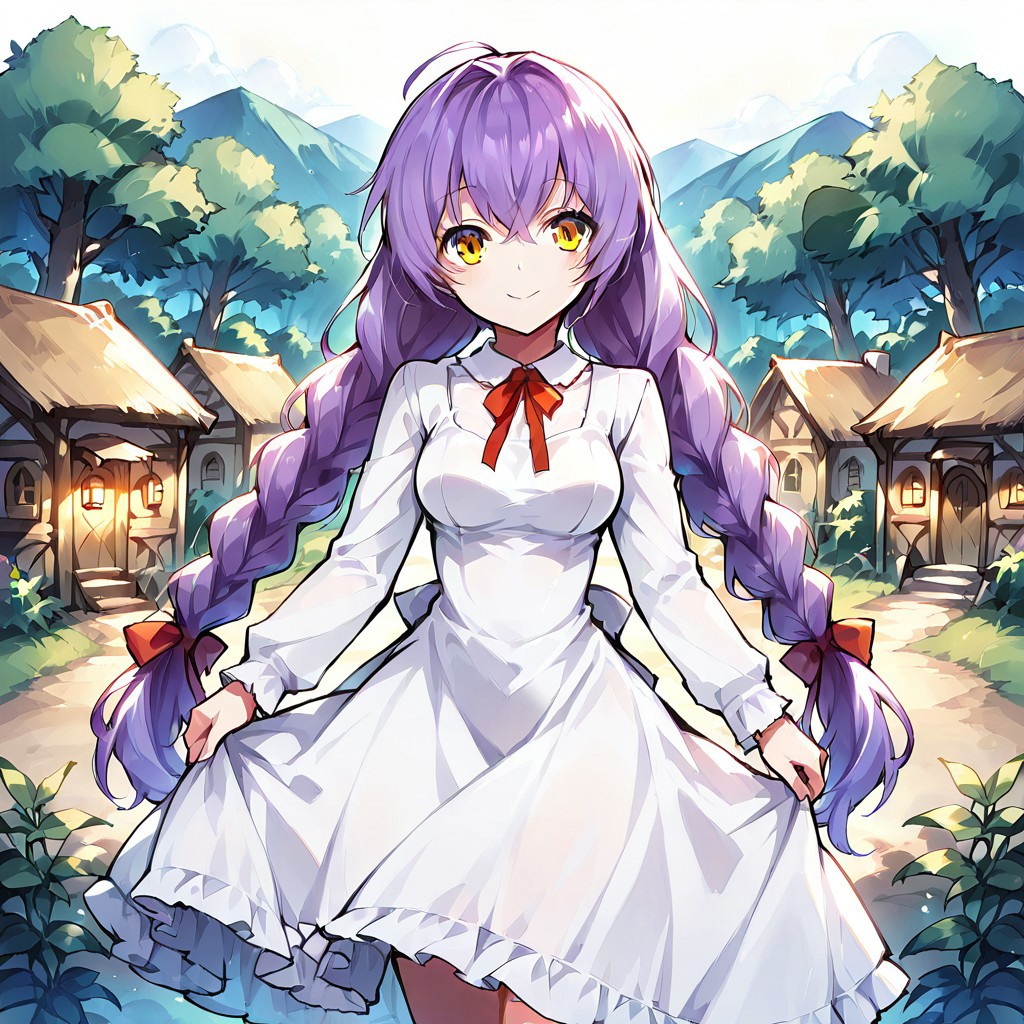 Ellen?: 엘렌, 보라색 머리, 긴 머리, 노란 눈, 머리 리본
