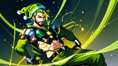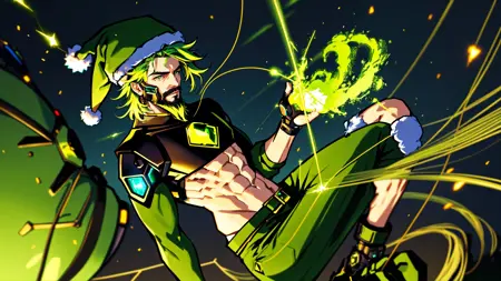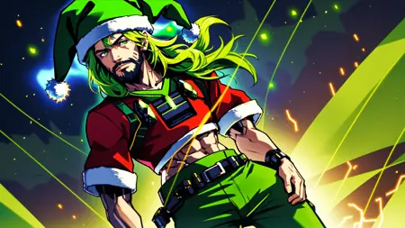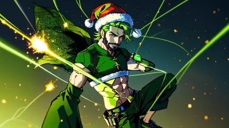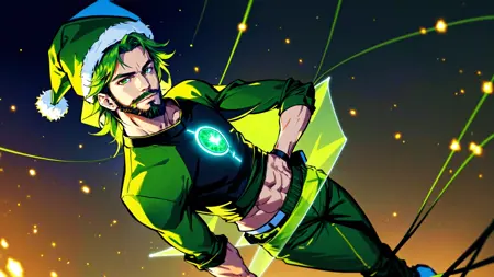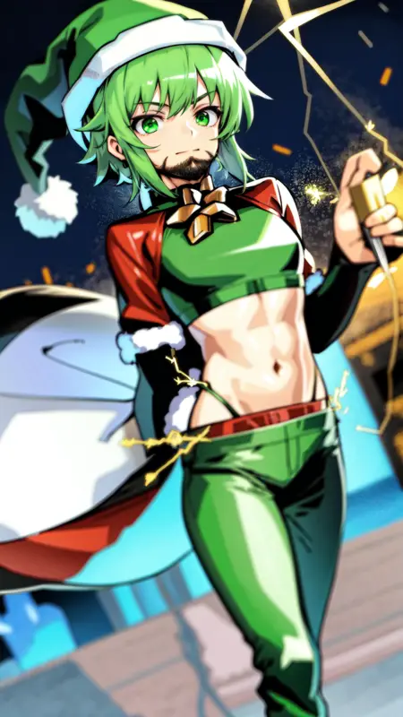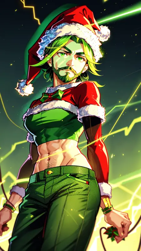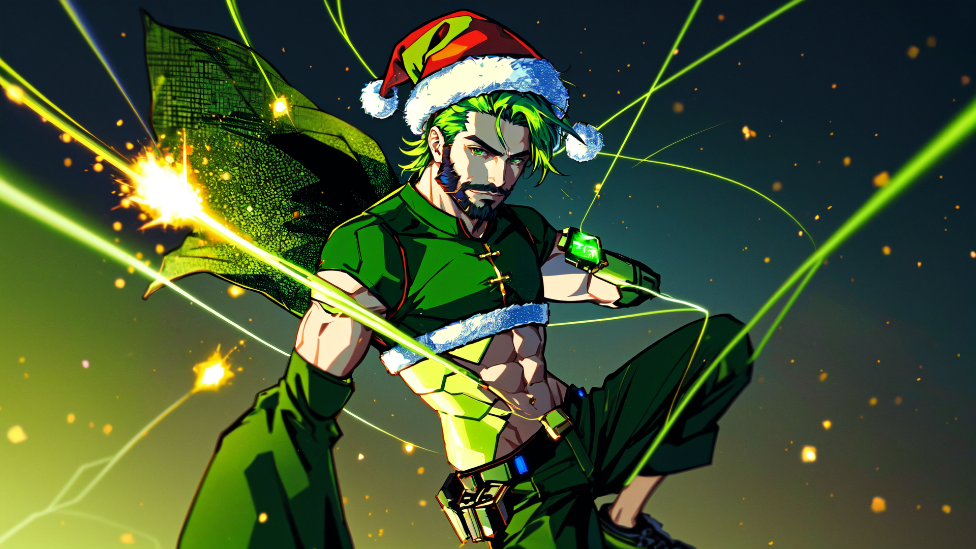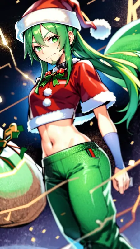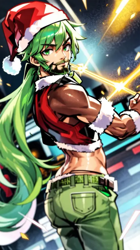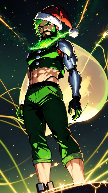 초록 테마의 산타 모자를 쓴 사이버거를 영향을 미칩니다.
