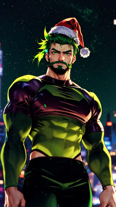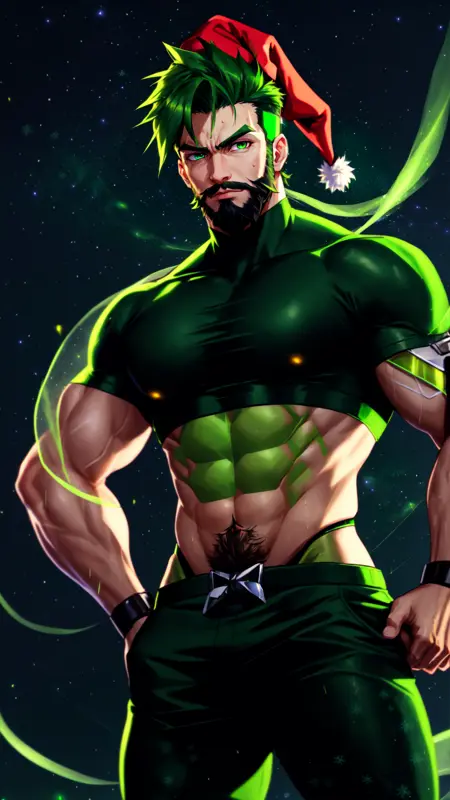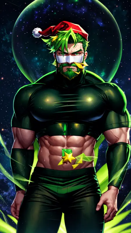 초록 테마의 산타 모자를 쓴 사이버거를 영향을 미칩니다.