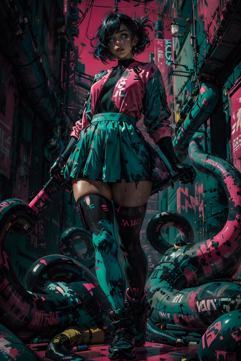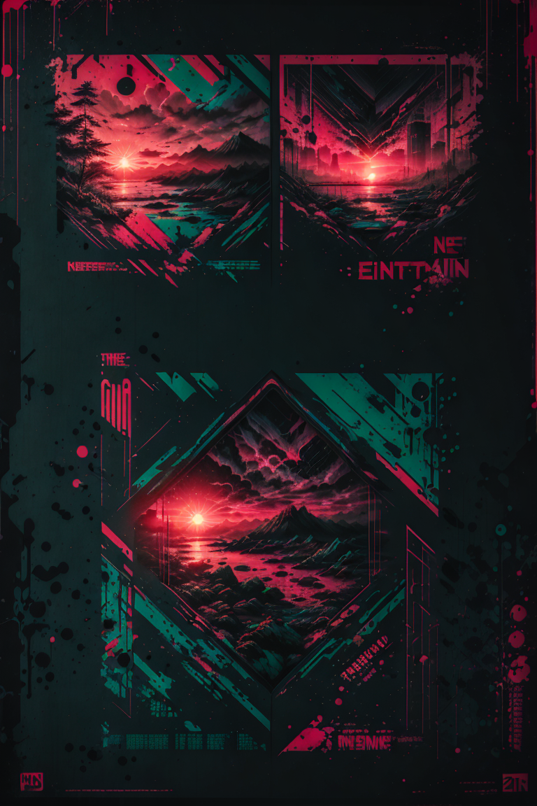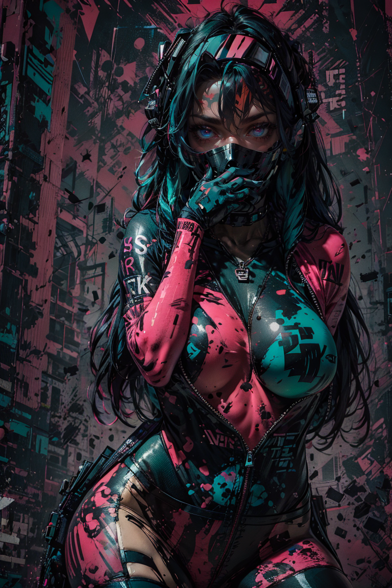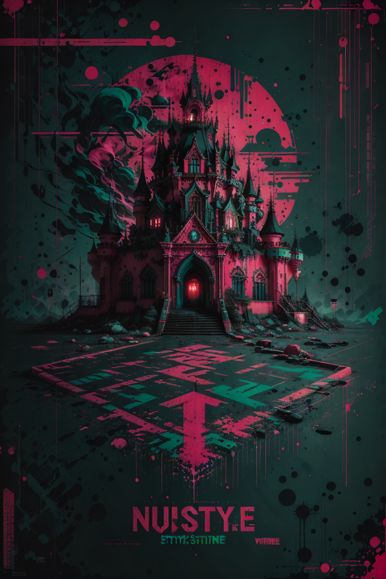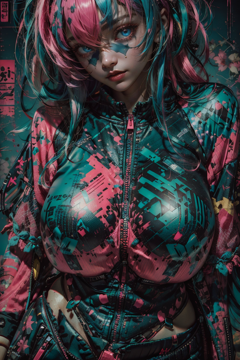 トリガー: nsstyle、サイバーパンク・エディトリアル、スクリーンプリントテクスチャー、漢字タイポグラフィー、ターコイズコントラスト、ピンク