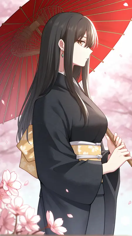 shenyouchu, 긴 머리, 갈색 눈, 검은 머리, 앞머리, 눈 사이의 머리카락,
