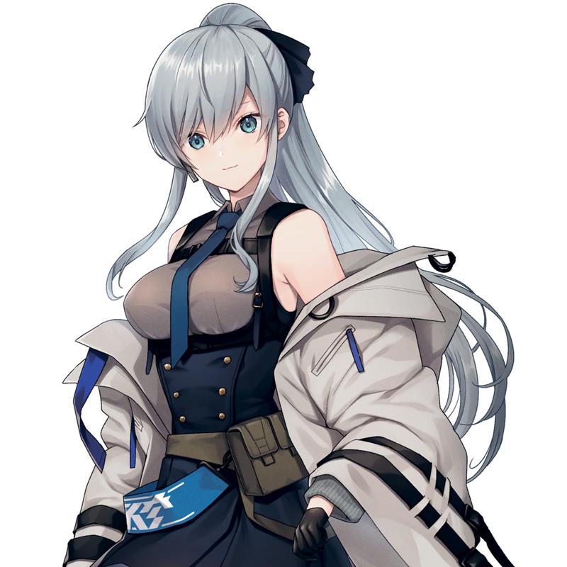 do_ksmyk, 1girl, solo, blue eyes, long hair, grey hair, sidelocks, ponytail, large breasts,