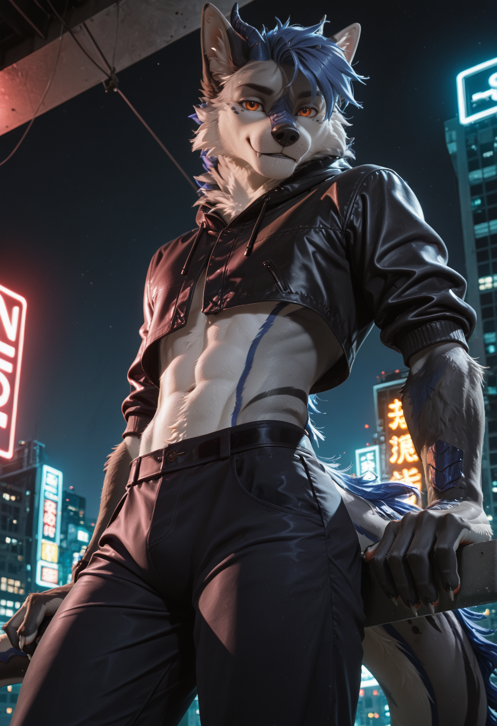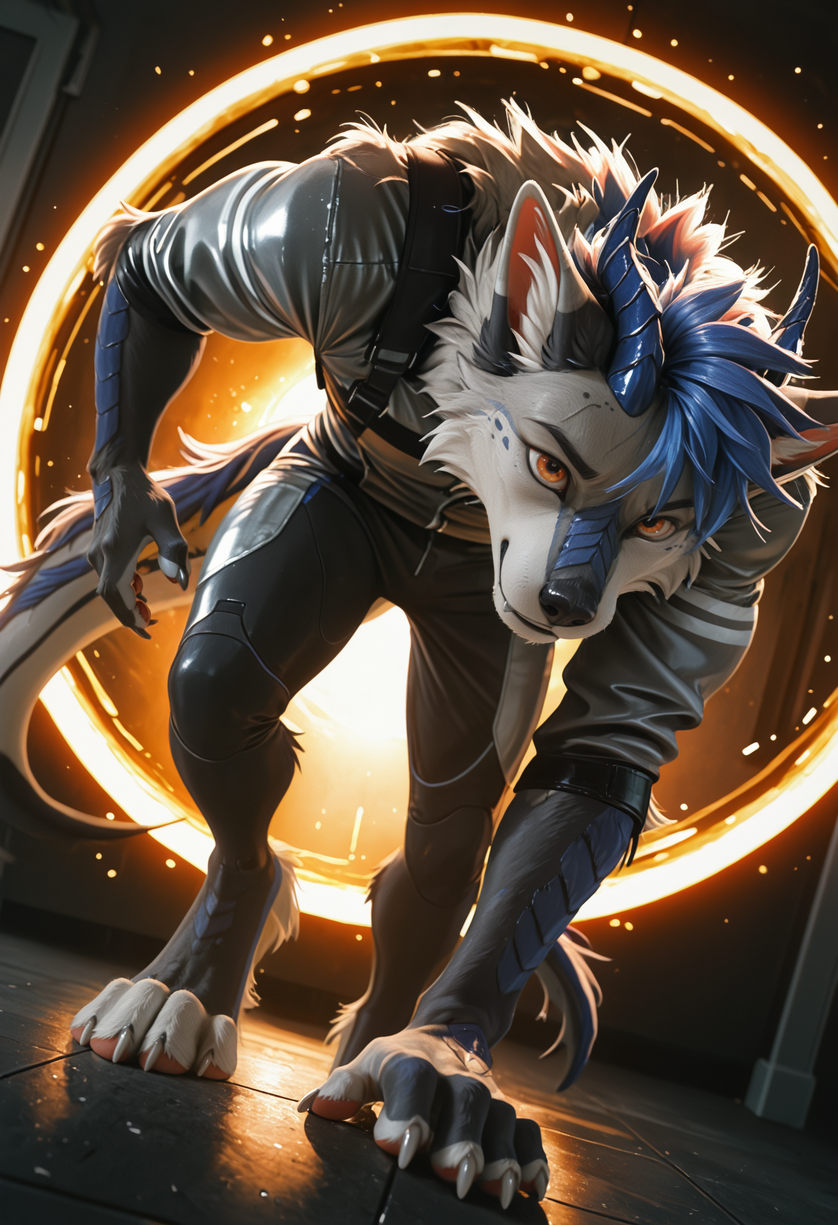 📝 Lincoln — оригинальный гибрид волка и дракона от Redept, с атлетичным телосложением, серым мехом с синими акцентами, длинным выразительным хвостом, дигитиградными ногами, мягкими драконьими чертами и спокойной уверенной подачей。