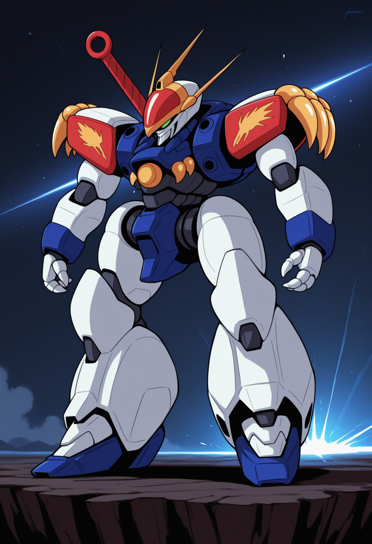 트리거 단어: ryuj1nm4ru, 메카, 색상 홍채, 눈동자 없음, 전체 신체,