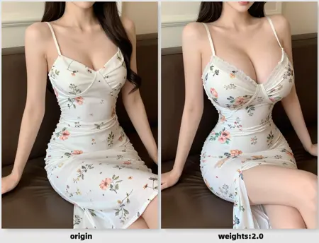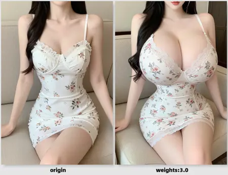 이것은 제가 처음 만든 슬라이더 LoRA입니다. LoRA 가중치를 조정하여 가슴 크기를 제어할 수 있습니다.