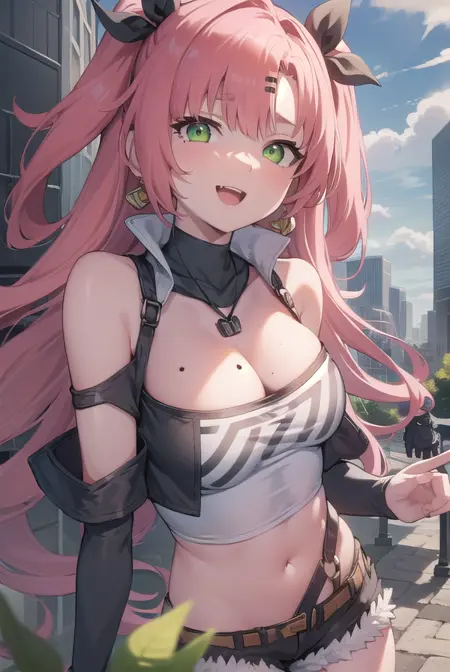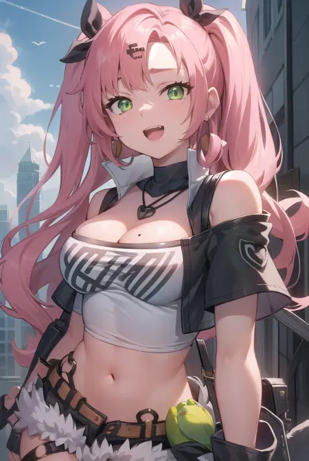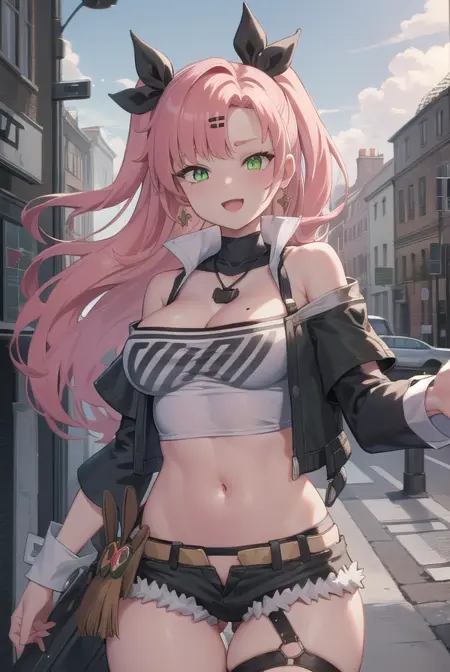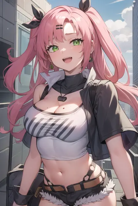 nicole demara, (緑の目:1.5), ピンクの髪, ヘアアクセサリー, リボン, ヘアクリップ, 長い髪, 赤ん坊のほくろ, 胸のほくろ, 大腿のほくろ, 目の下のほくろ, 両サイドアップ, リボン,