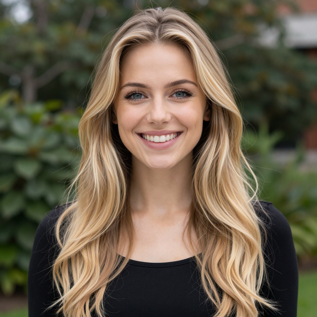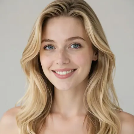 さまざまな照明の中で笑う顔の金髪の女性を作成します