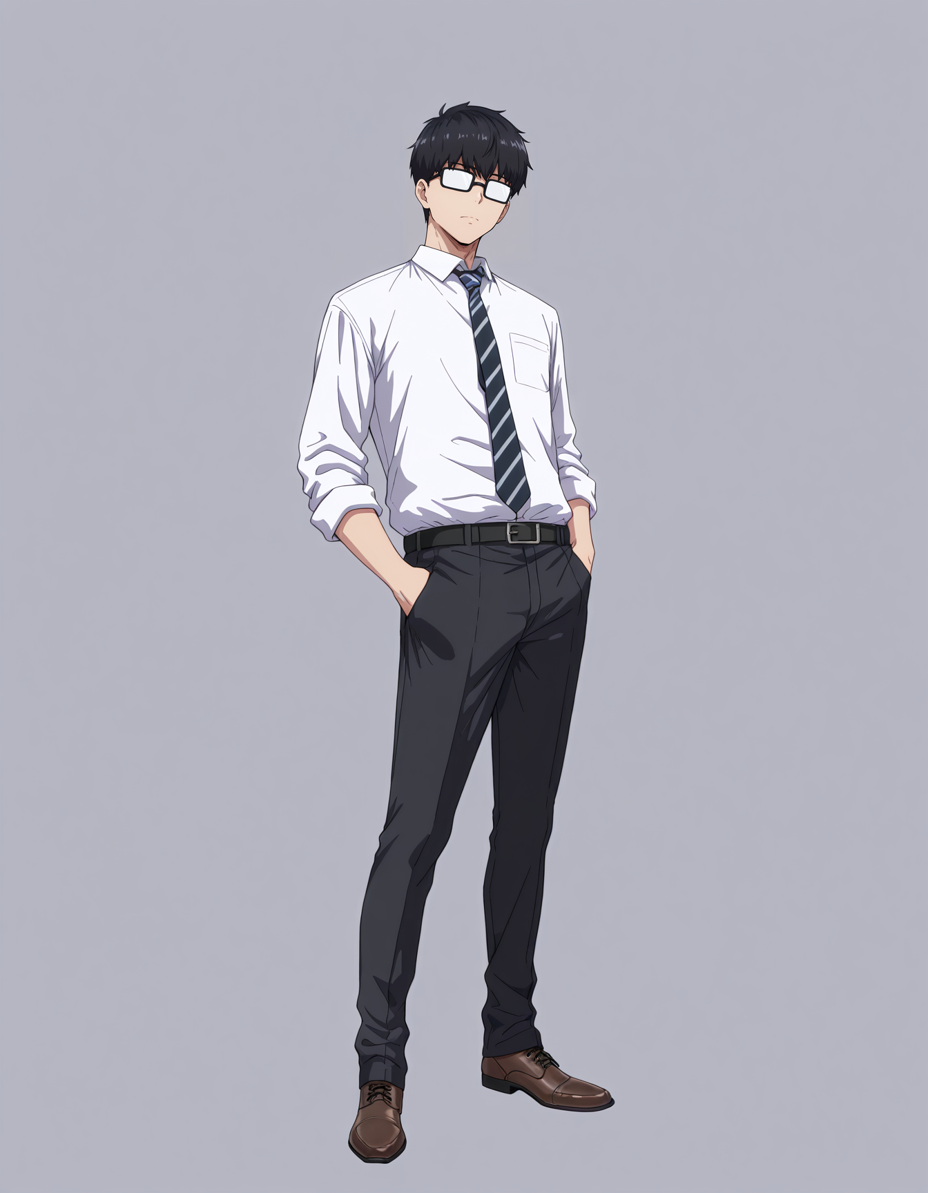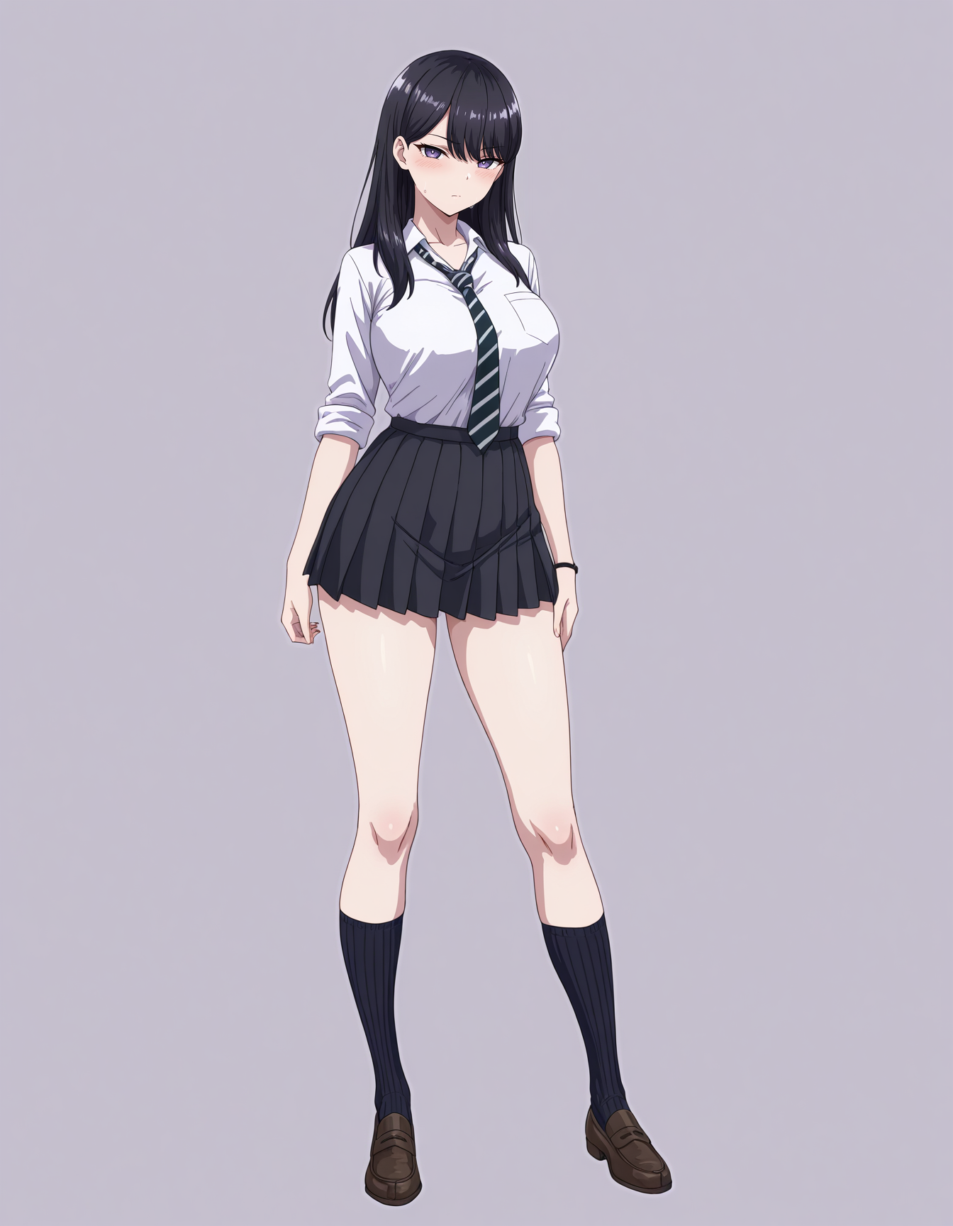 mai_igm,mai_hikariig,long_hair,black_hair,purple_eyes,school_uniform,pleated_skirt,necktie,sleeves_rolled_up,loafers