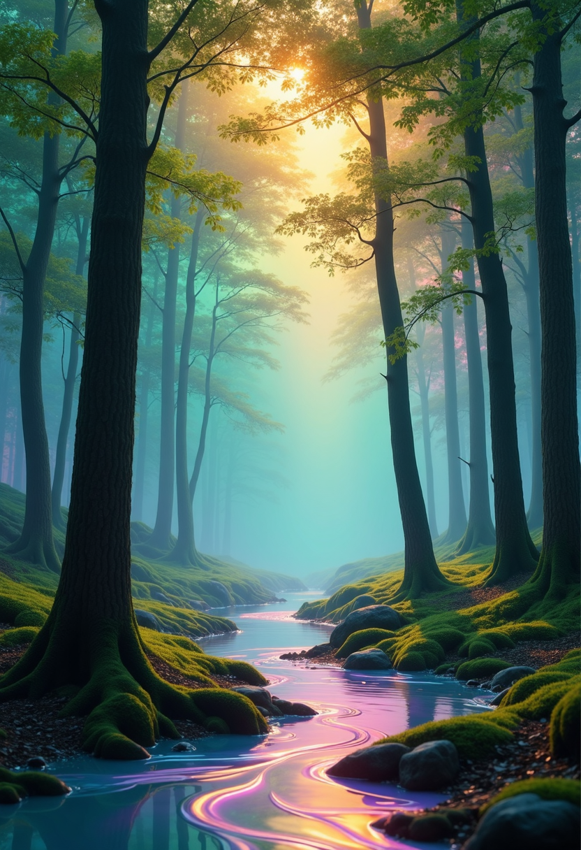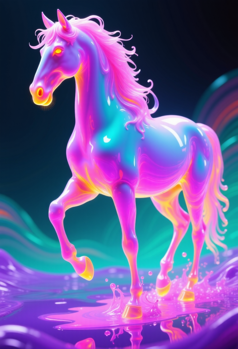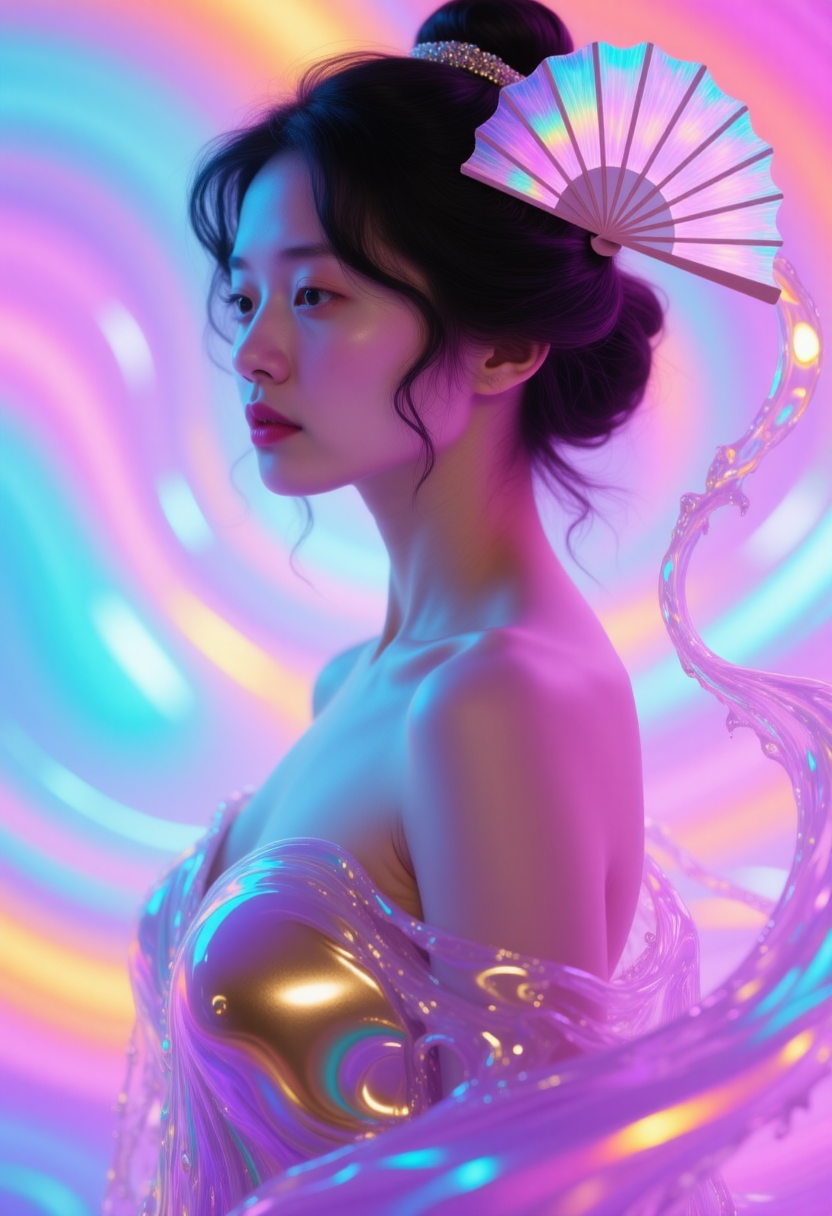 흐르는 색채 물질, 액체 기억, 내부 발광, 부드럽게 녹아내리는 형태 같은 표현이 매우 효과적입니다.