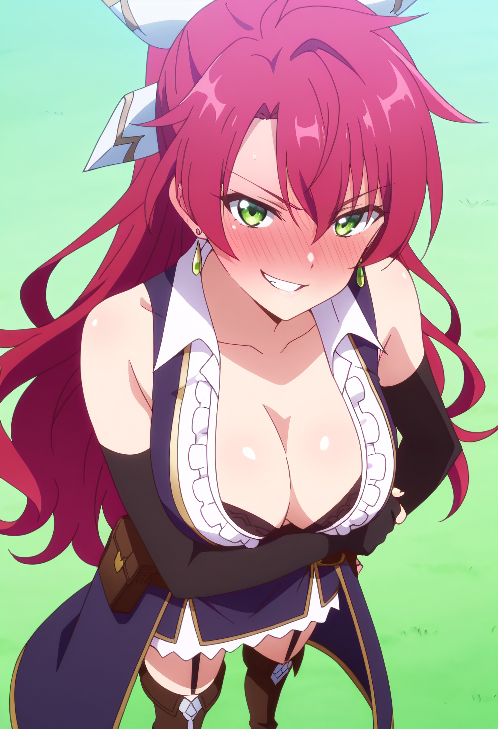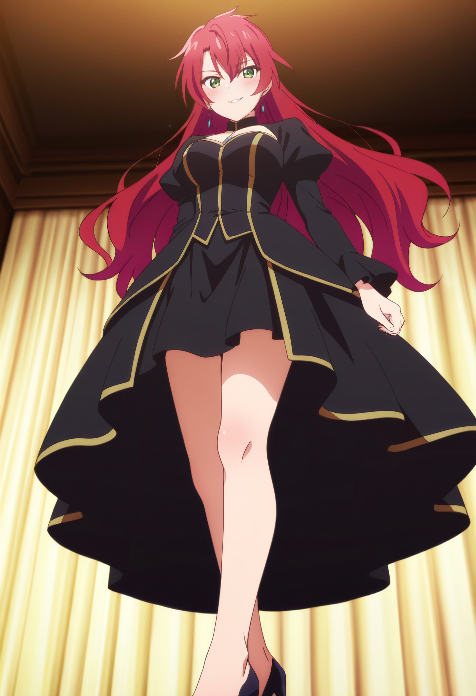 CKWJeanne、長い髪、赤髪、緑の目、目の間の髪、前髪、髪の間から見える眉、非常に長い髪