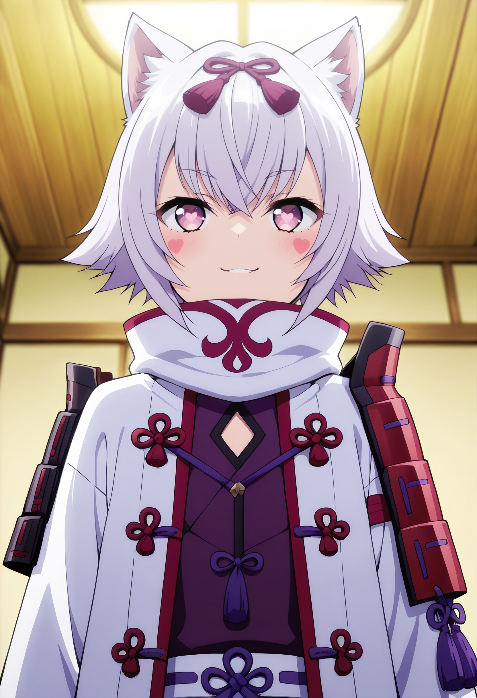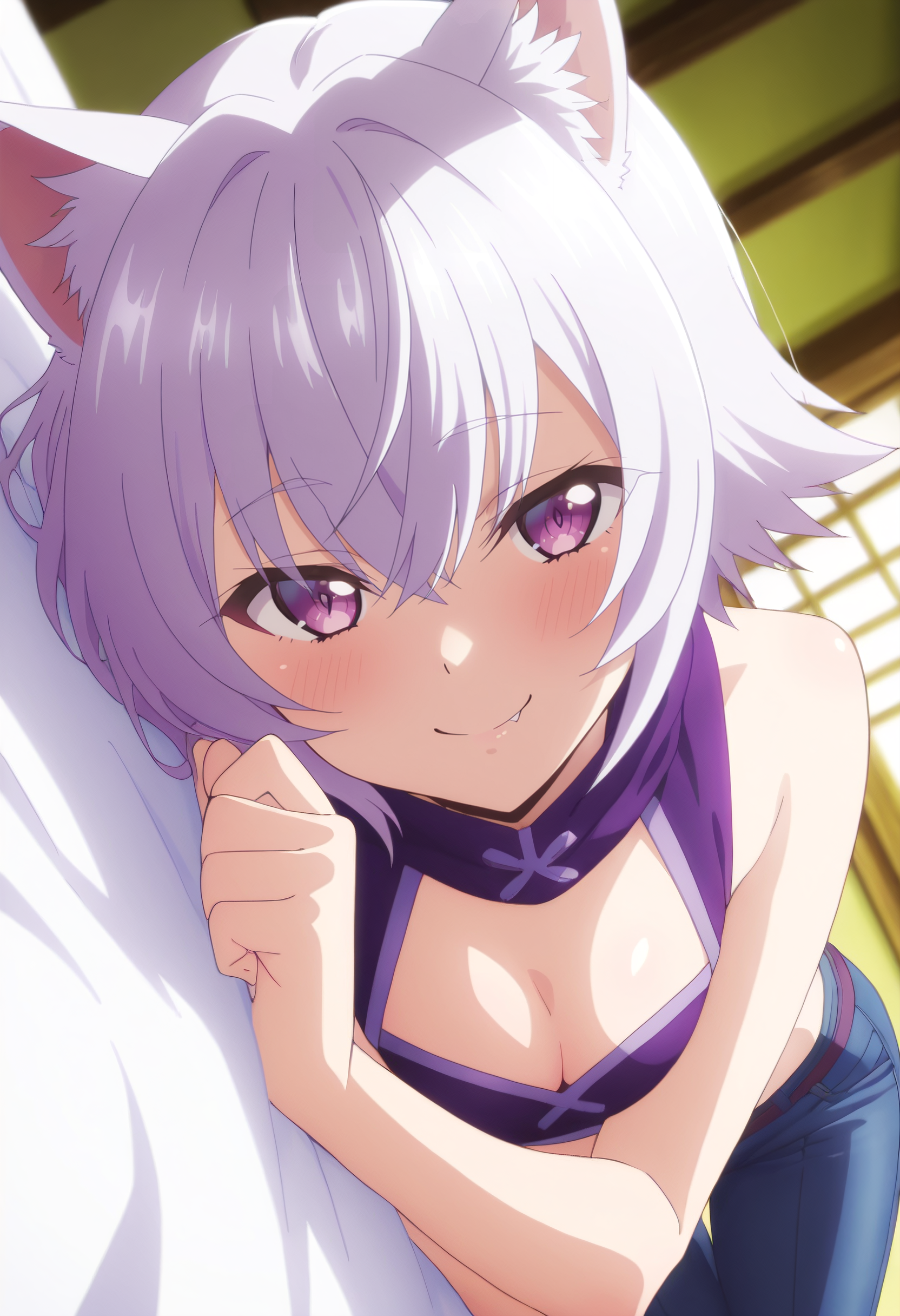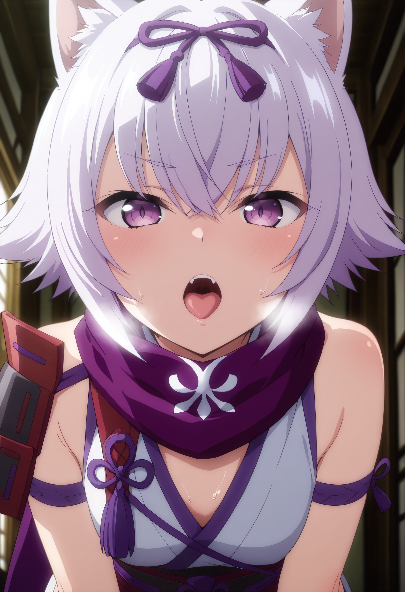 CKWShura、動物の耳、前髪、髪の間から見える眉毛、目と目の間の髪、白髪、紫の目、短い髪、狼の耳