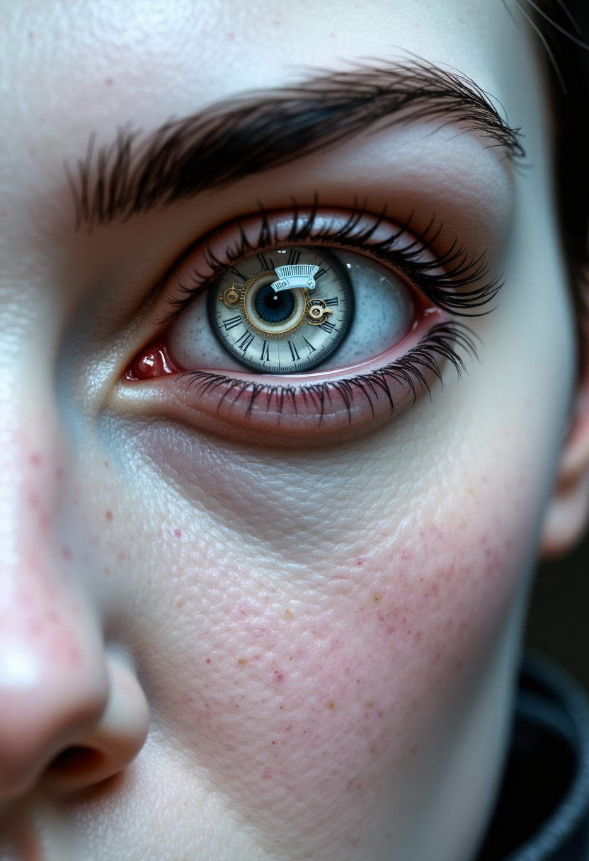 SDXL: pale_chronomancer, clockwork iris, intricate iris detail, steady gaze, pale skin