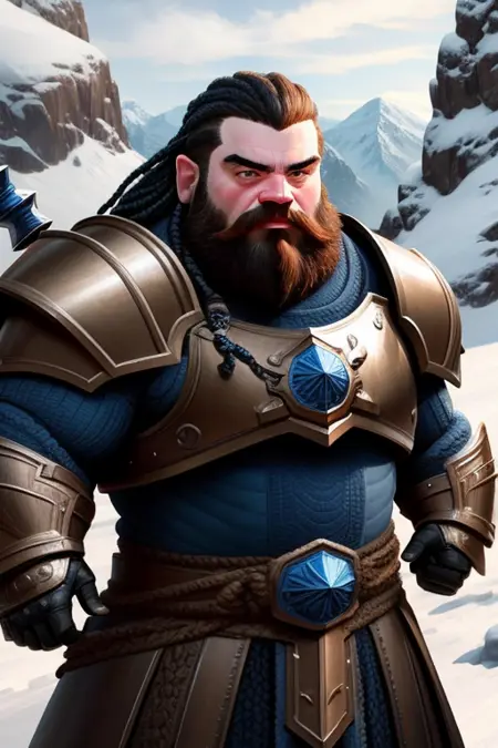 2)奇幻风格矮人:在正面提示中加入“矮人、矮小、健壮、宽肩”,在负面提示中加入“尖耳朵、角、獠牙”。根据具体模型调整权重。