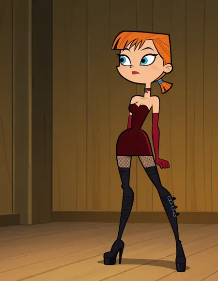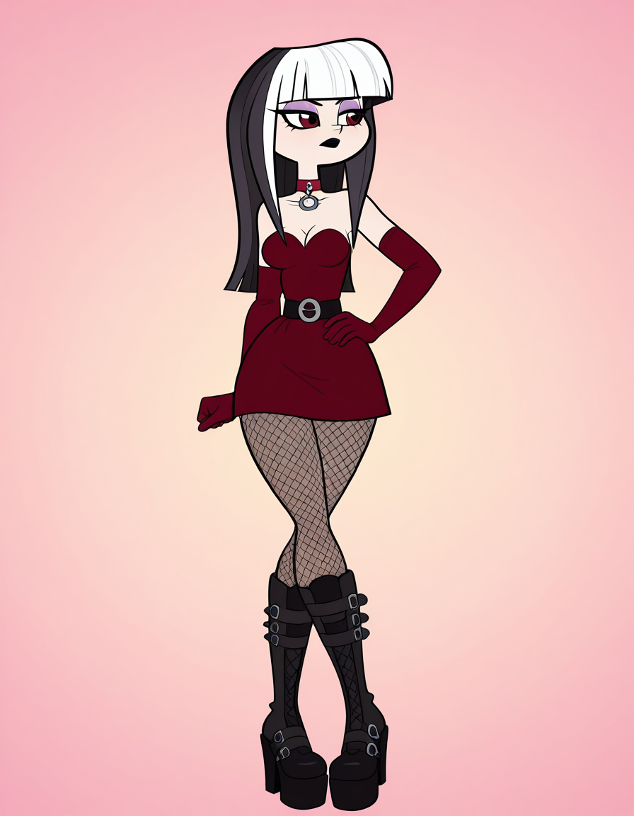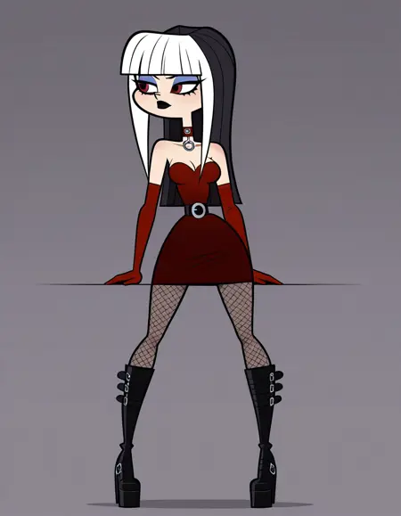 This LoRA perfectly captures Crimson, the stoic, goth, and deadpan half of the “Goth” team with Ennui from Total Drama Presents: The Ridonculous Race (voiced by Anastasia Phillips). A pale, black-haired teen with a perpetual expression of mild disdain for everything except her boyfriend Ennui and their pet rabbit Loki, Crimson is the ultimate “nothing phases me” goth—speaking in monotone, rarely smiling, and finding beauty in the macabre. She’s the calm yin to Ennui’s bored yang. The model locks her classic Ridonculous Race design: black hair, red makeup, and eternal “this is fine” blank stare.