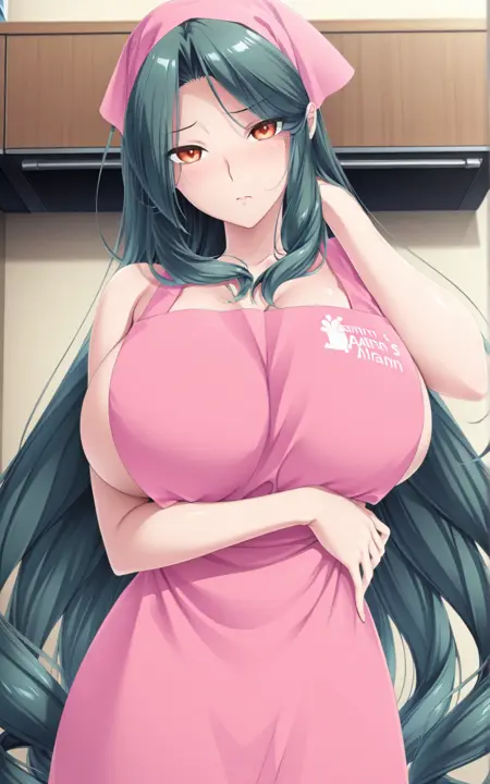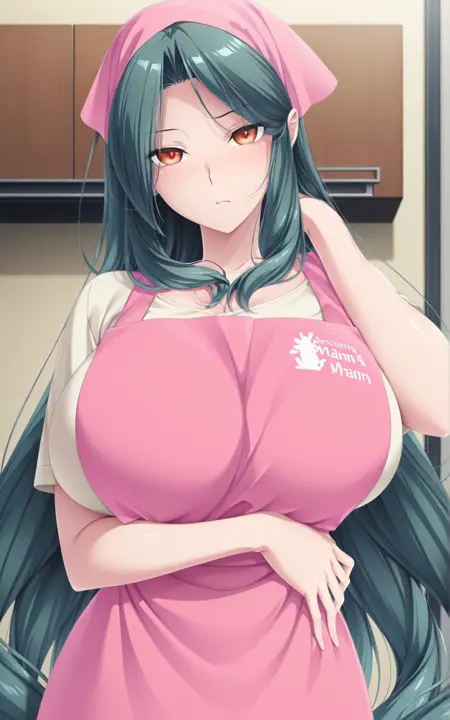 kana joudohama, 1girl, long hair, green hair, large breasts, orange eyes, mature female