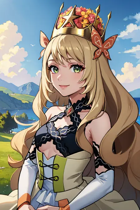 기본 복장: crown, dress, detached sleeves, bare shoulders