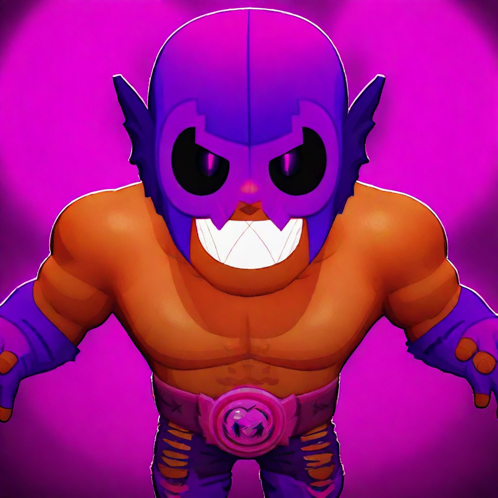 BSRud0, 1boy, muscular, broad shoulders, source_cartoon, shirtless, massive pectorals, wrestler purple mask, purple hollow eyes, purple gloves, purple pants, very handsome