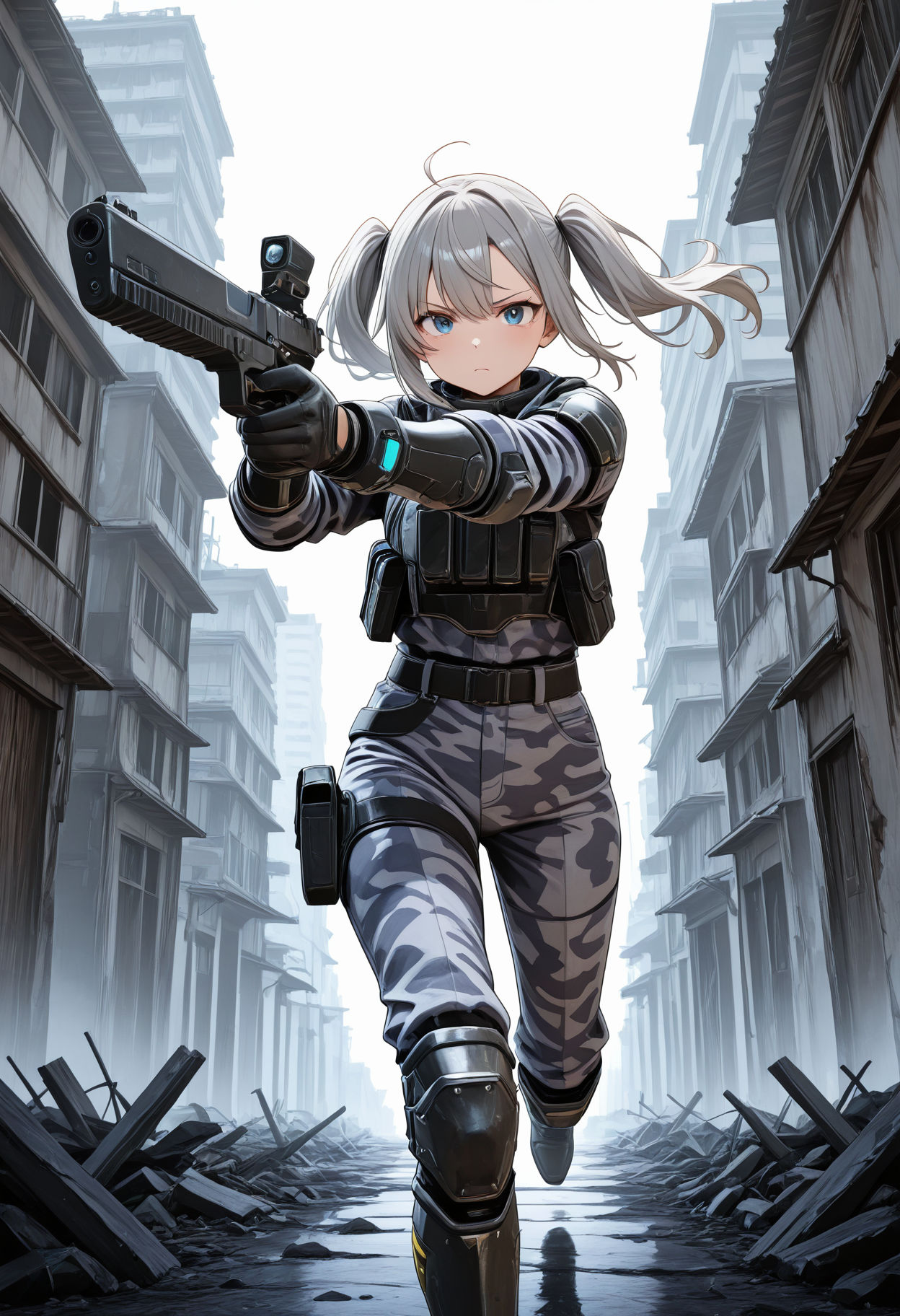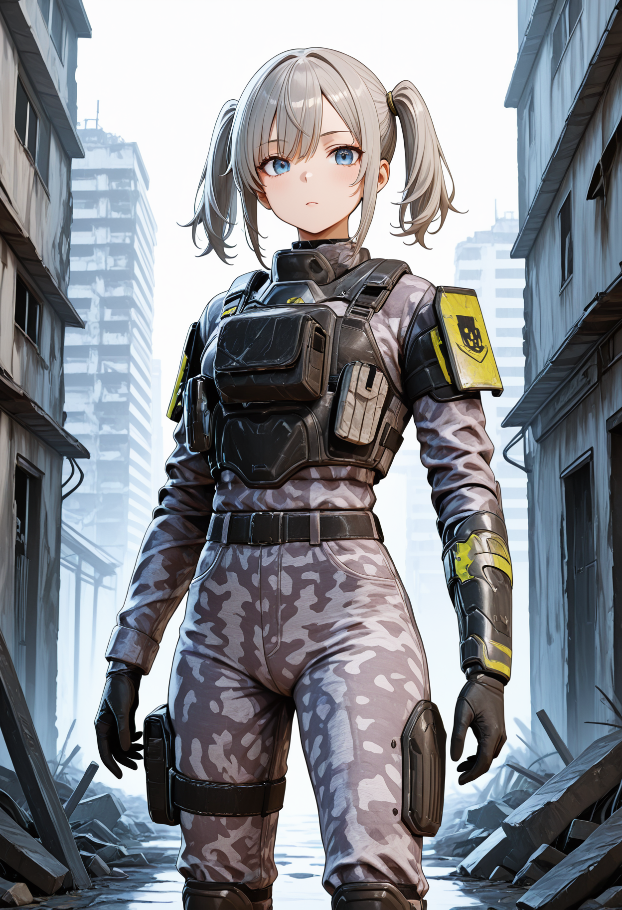 都市カモフラージュパターンは非常に密度の高いテクスチャーを持っており、Loraの強度が高すぎると多くの誤った装甲テクスチャーが発生する。Loraの強度は約0.6程度に設定し、通常の都市カモフラージュ作戦服として扱うことを推奨する。
