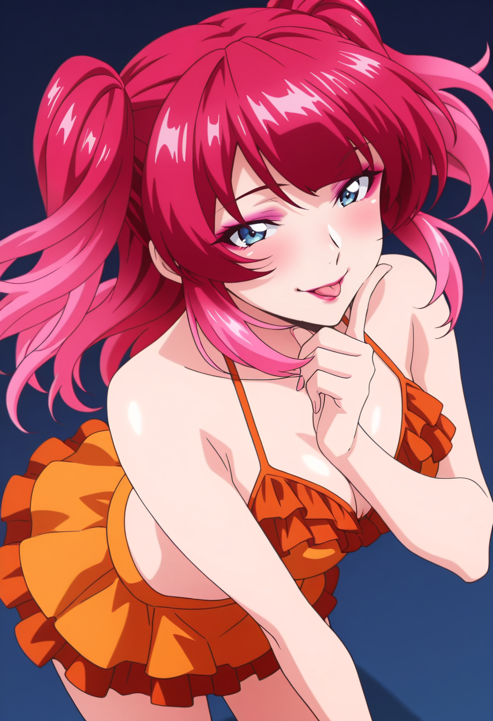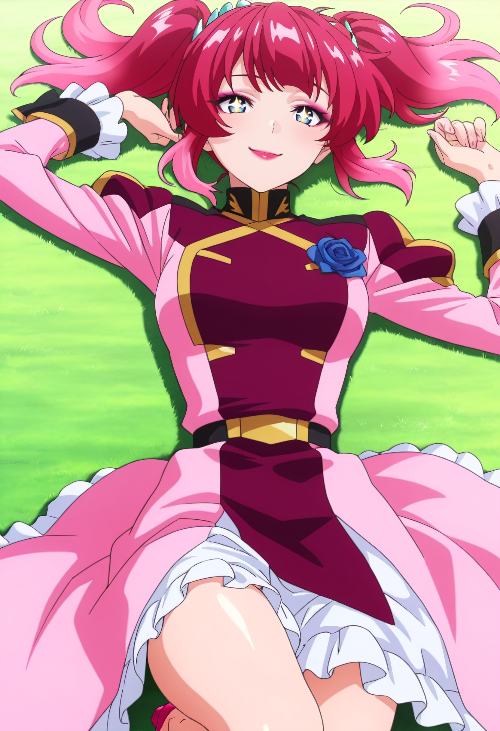 KSGAgnes、ピンクの髪、赤い髪、長い髪、青い目、ツインテール、前髪、サイドロール、リップスティック、メイク