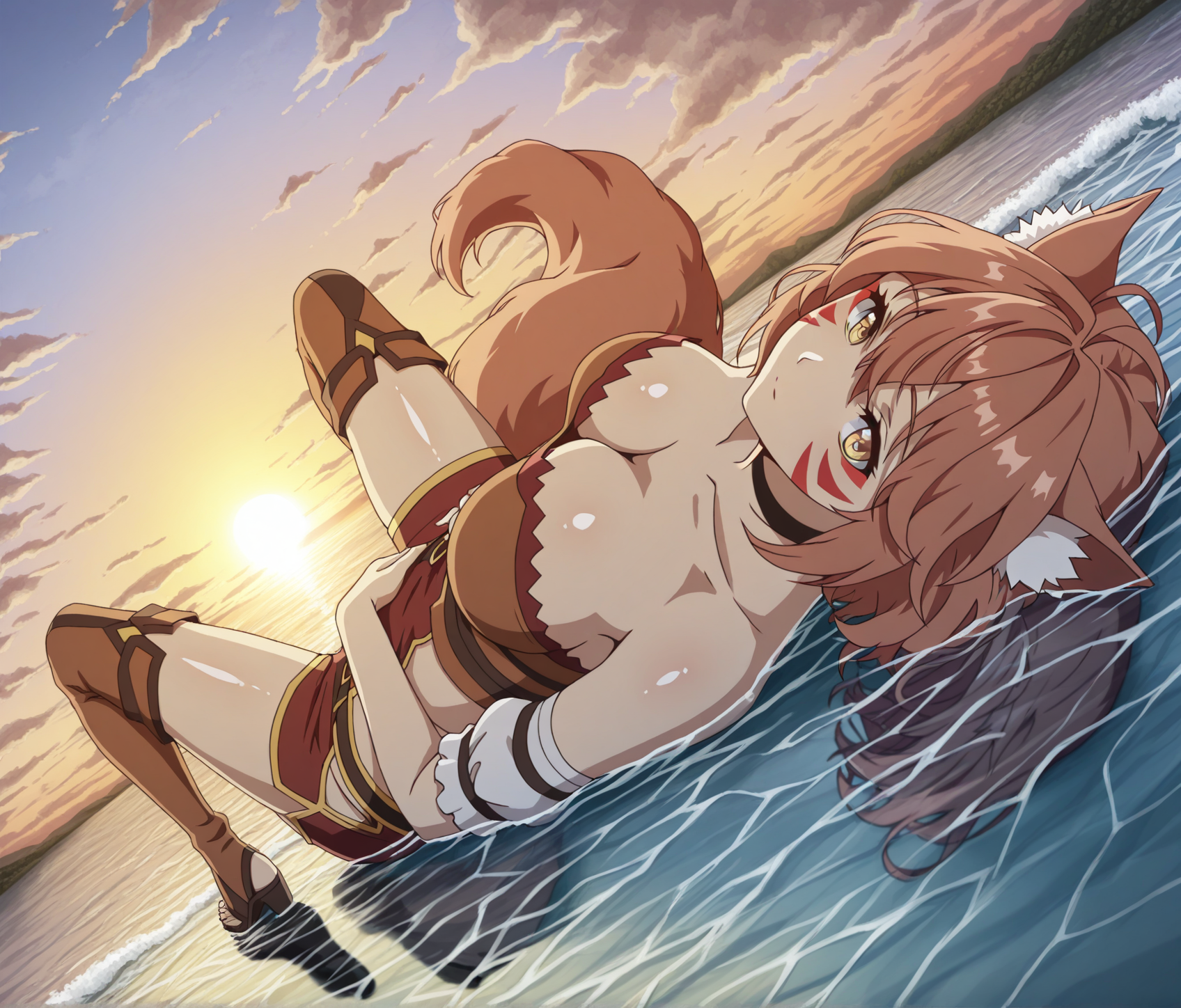 キャラクター:(SenaFarmingLife、動物の耳、顔の模様、金色の目、茶色の髪、ショートヘア、尾)