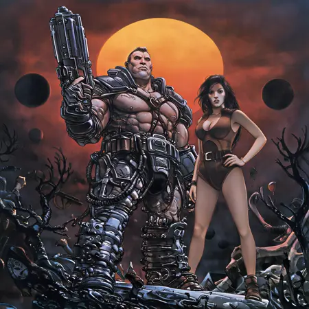 Let's go again with another legendary western artist style, this time with Juan Gimenez, argentinian artist author of comics like Metabarons's saga, Leo Roa, or The Fourth Power. Like Luis Royo and Alfoso Azpiri, he published some of his works in the Heavy Metal Magazine, and did the covers of some well known spanish videogames, like Sol Negro, Mutan Zone and Livingstone I Presume 2, from Topo Soft, among others.