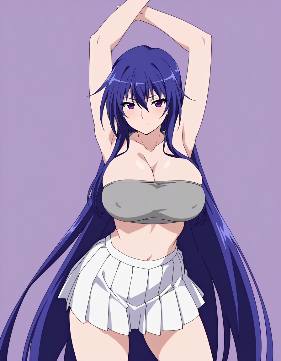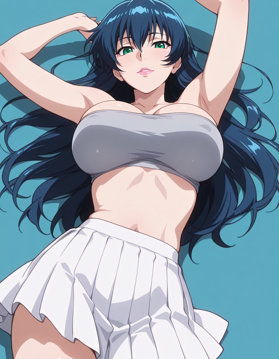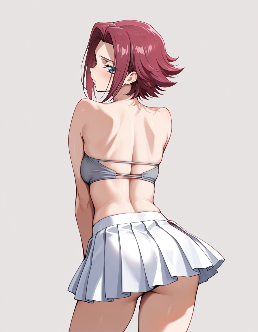 mai_grey_tube_top,pleated_skirt,white_skirt