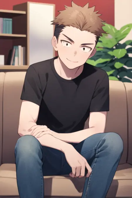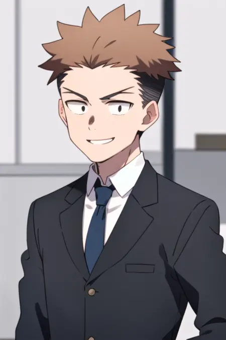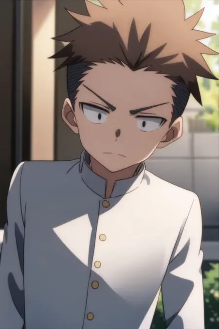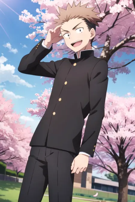 1boy, solo, brown hair, short hair, dot pupils, gakuran, black jacket, long sleeves