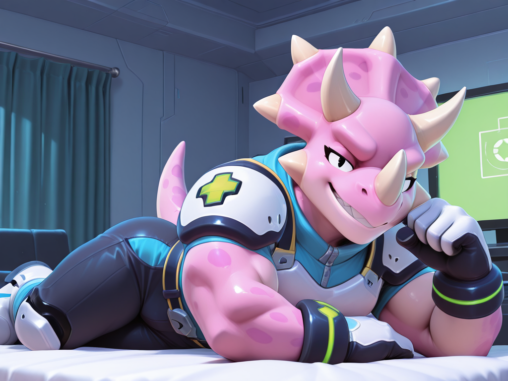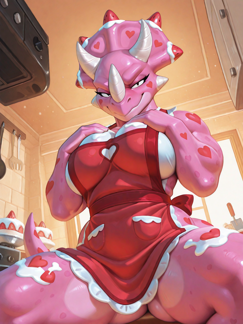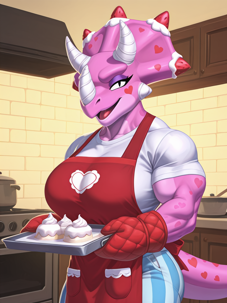 このモデルの学習には多くのプロパティを試行錯誤しました。当初、ローカルでモデルを学習させようとしていましたが、トリッシュのフットボール装備を正確に再現する結果が得られず、なぜかCivitAIで学習させた場合には問題が発生しませんでした。Draw Things内で何か変更すれば、彼女のフットボールアーマーをより速く学習できる可能性がありますが、これは私の忍耐力を試すものであり、Draw Thingsの操作はすでに難解で制限が多く(バッチサイズすら制御できない、いったい何を言っているんだ?)。また、トリッシュのパティシエスキンを組み合わせて試してみました。とてもかわいらしく、キャラクターに多くの個性を加え、さらに多くの衣装リファレンスの機会を提供します。恐竜のドレスアップを楽しんでください。